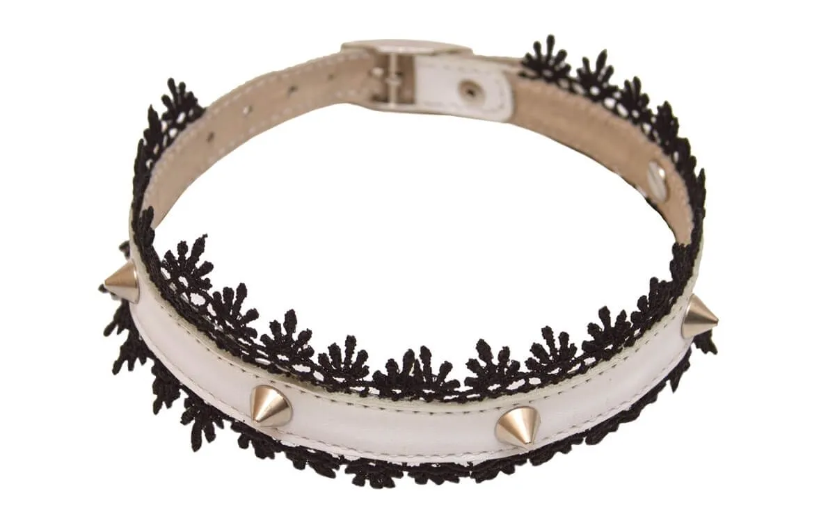 —Ошейник Подиум с кружевом и шипами, белый
