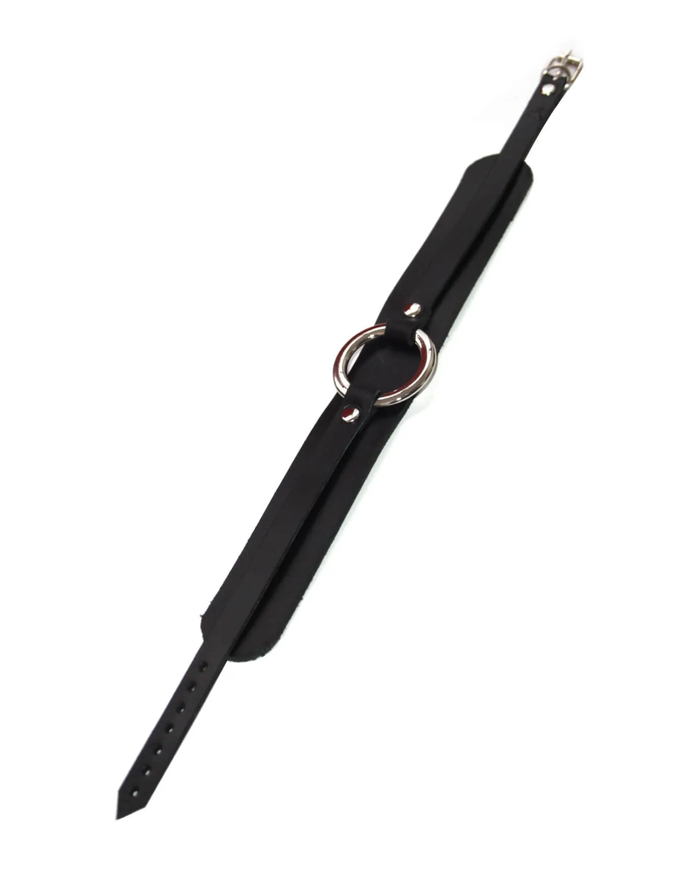 Черный кожаный чокер с металлическим кольцом посередине можно использовать не только в качестве сексуального и дерзкого украшения, которое акцентирует внимание на Вашей шейке, но также и в качестве аксессуара во время игр с элементами БДСМ. К большому кольцу при помощи карабина можно присоединить поводок, чтобы одергивать своего партнера, если он будет плохо себя вести, или направлять его движения. Просоединять можно и другие аксессуары, все зависит только от Вашей фантазии и желаний.