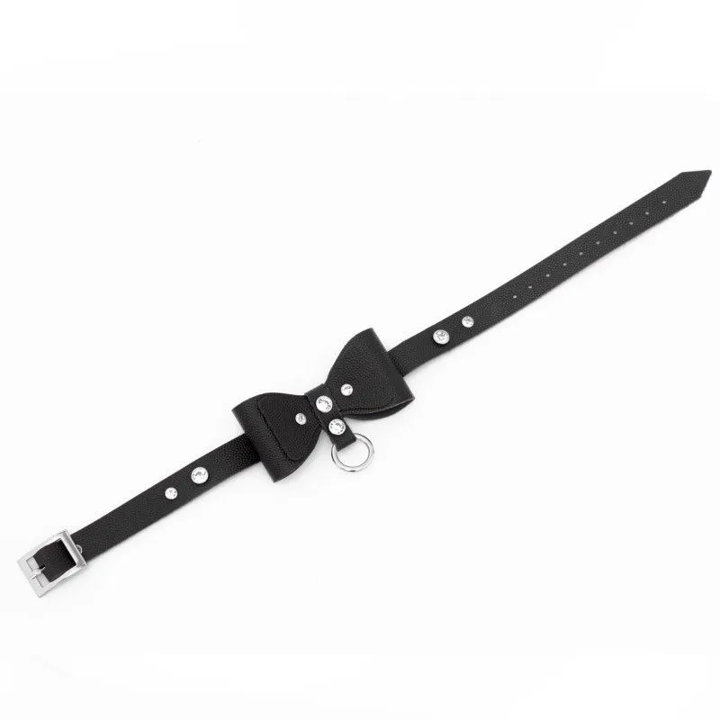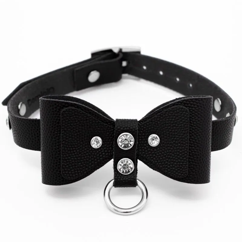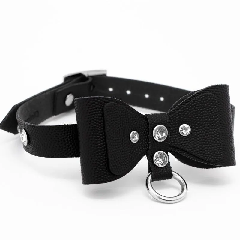 Элегантный чокер выполнен из натуральной кожи толщиной 2.3 мм и бантом-бабочкой. Такой аксессуар можно носить с повседневной одеждой, чтобы придать своему образу дерзости и сексуальности. Также он будет отлично смотреться вместе с ролевым эротическим костюмом во время любовной игры с партнером. Чокер акцентирует внимание на прекрасной шейке и подчеркнет страстность Вашей натуры. Длина чокера регулируется при помощи ремешка с пряжкой, поэтому Вы сможете подогнать его под нужный размер. Длина чокера 38 см, ширина 1,5 см. Есть колечко, чтобы при необходимости пристегнуть поводок - всё для простора вашей фантазии.