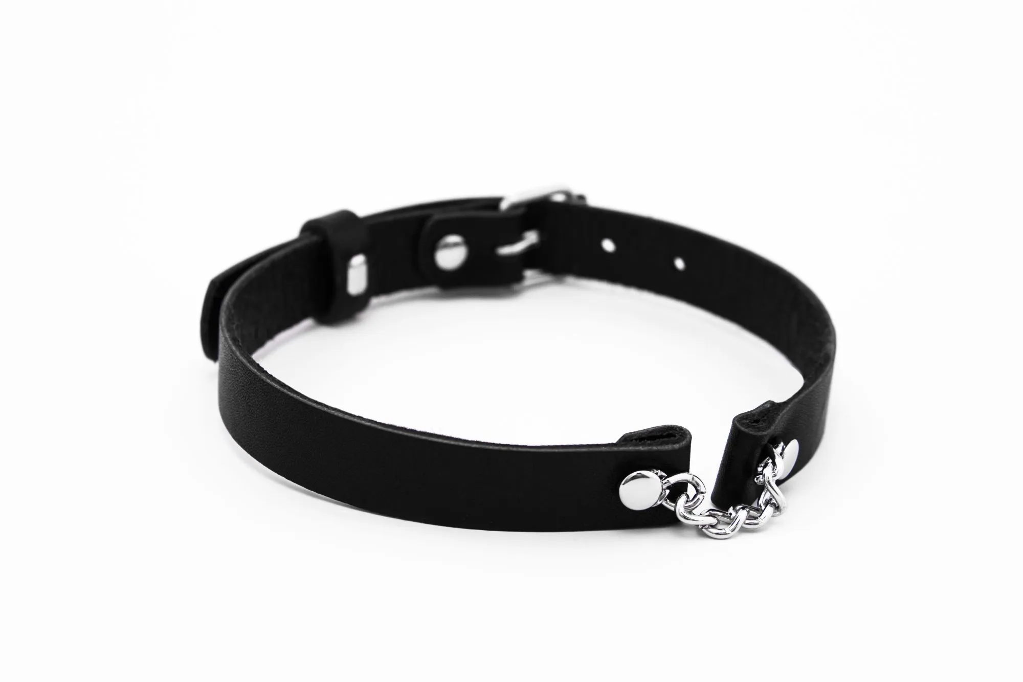 Чокер черного цвета из натуральной кожи будет прекрасным украшением, которое подчеркнет Ваш индивидуальный стиль и акцентирует внимание на прекрасной шейке. Также он сможет послужить Вам во время ролевых игр с элементами БДСМ, это заметно разнообразит Ваши любовные игры и позволит испытать новые будоражащие ощущения.