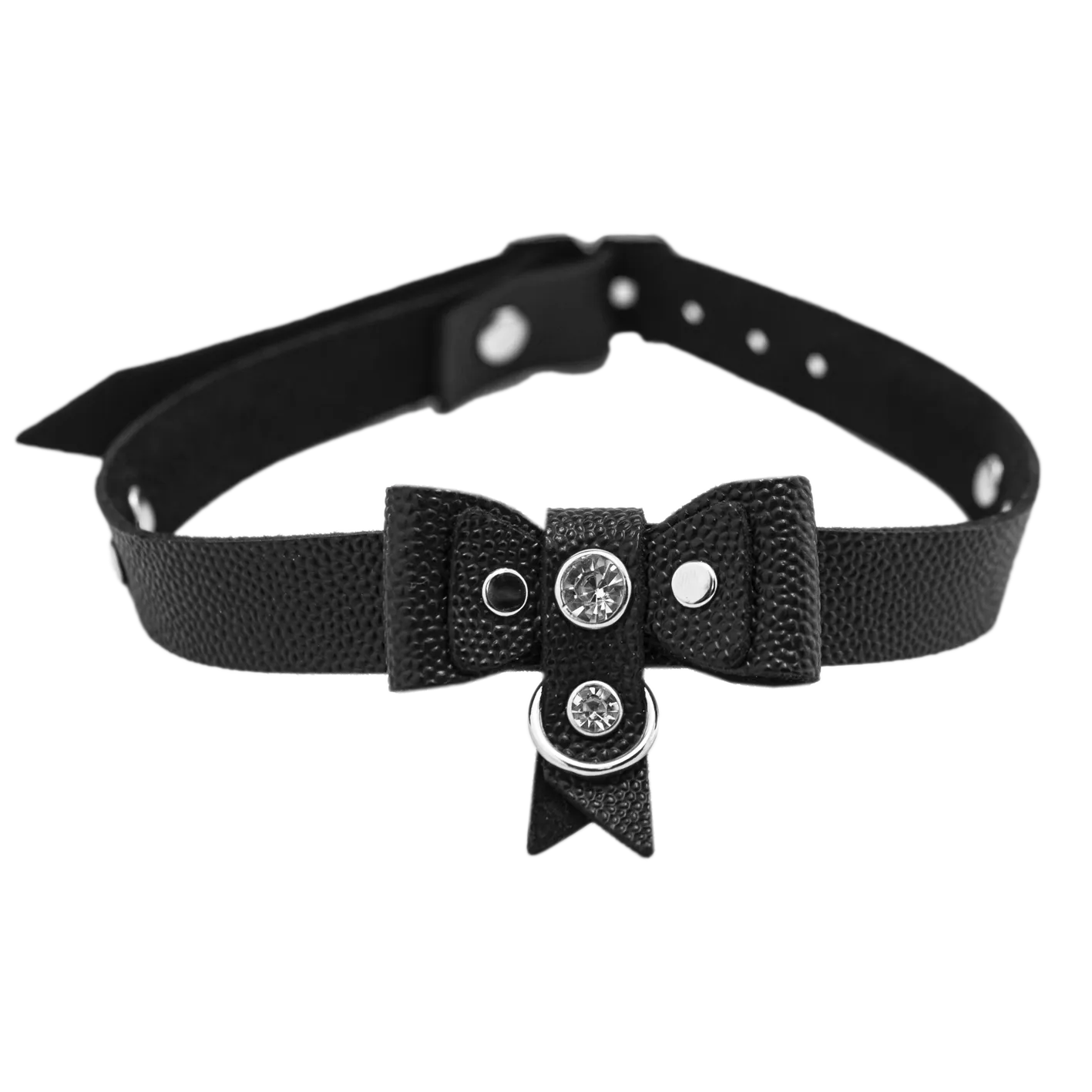 Элегантный чокер выполнен из натуральной кожи с бантом-бабочкой. Такой аксессуар можно носить с повседневной одеждой, чтобы придать своему образу дерзости и сексуальности. Также он будет отлично смотреться вместе с ролевым эротическим костюмом во время любовной игры с партнером. Чокер акцентирует внимание на прекрасной шейке и подчеркнет страстность Вашей натуры. Длина чокера регулируется при помощи ремешка с пряжкой, поэтому Вы сможете подогнать его под нужный размер. Есть колечко, чтобы при необходимости пристегнуть поводок - всё для простора вашей фантазии.