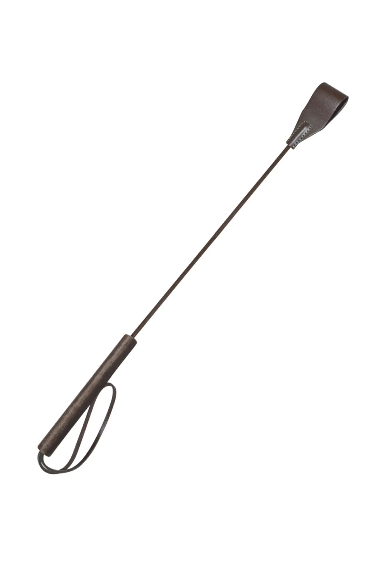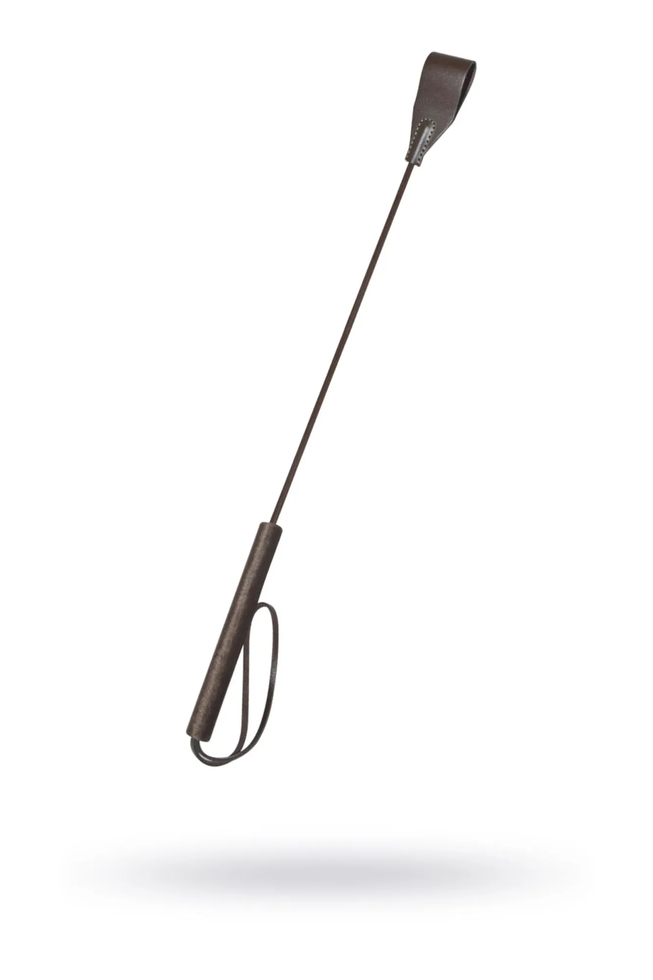 Стек из серии Готика представлен в виде роскошного, изящного изделия цвета темного шоколада. Петлеобразная хлопушка стека изготовлена из натуральной кожи высокого качества, располагается на конце гибкого, но прочного хлыста. Комфортное использование девайса обеспечивает бархатистая рукоять, покрытая велюровой тканью. Ремешок-петля, находящийся на рукояти, позволяет дополнительно фиксировать стек на запястье.