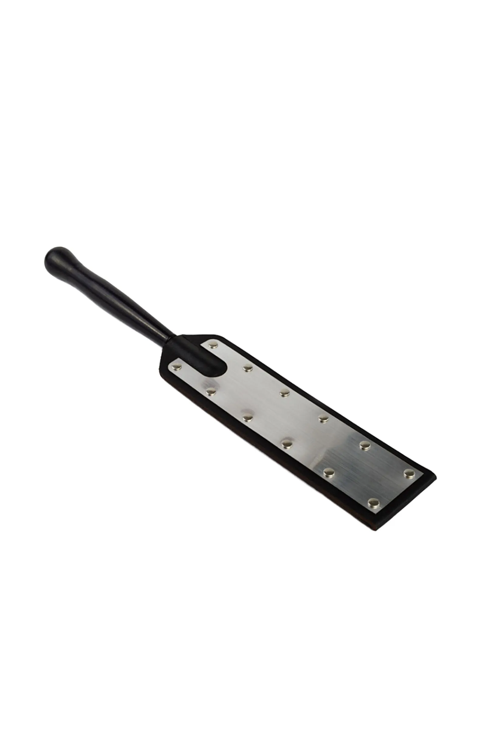 Шлепалка изготовлена из натуральной кожи и декорирована вставкой имитирующей металл. С одной стороны ударная часть хлопушки имеет кожаную поверхность, с другой дкоративную вставку. По Вашему желанию, на хлопушке можно разместить логотип или надпись.