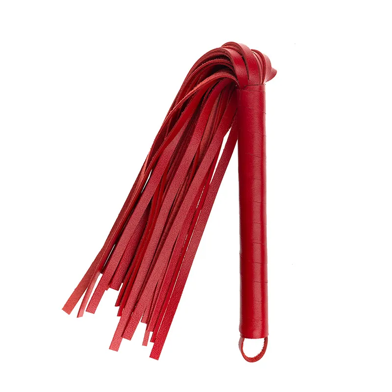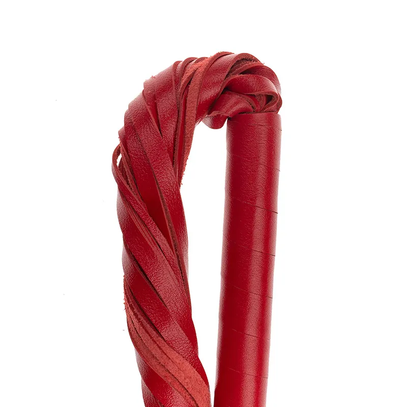 Ручка из красной кожи удобно лежит в руке. Мягкие замшевые хвосты могут послужить для мягкого поглаживания в качестве прелюдии, или для разогрева, порка получится мягкой, но ощутимой. В чьих руках эта плетка, тот и устанавливает правила.