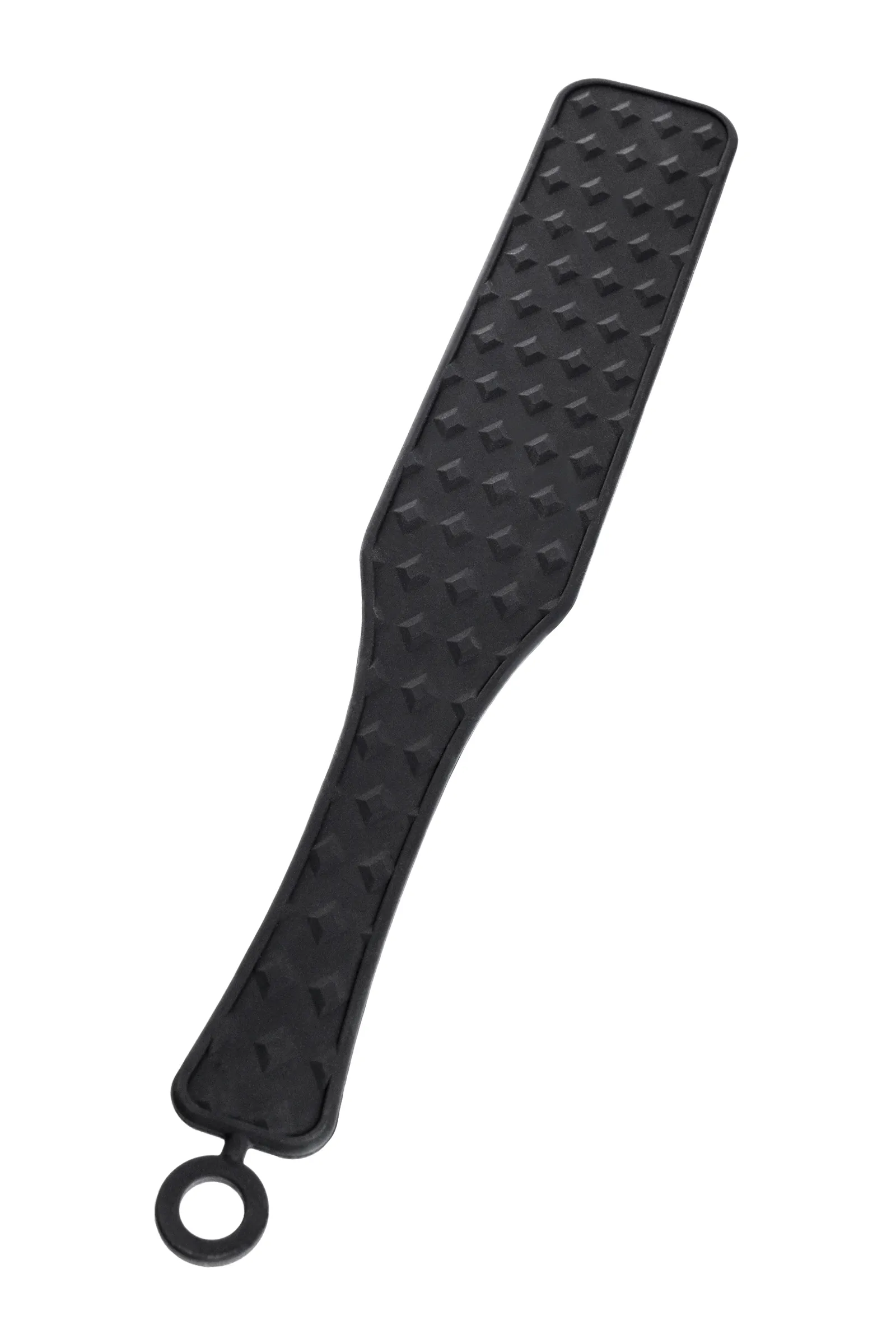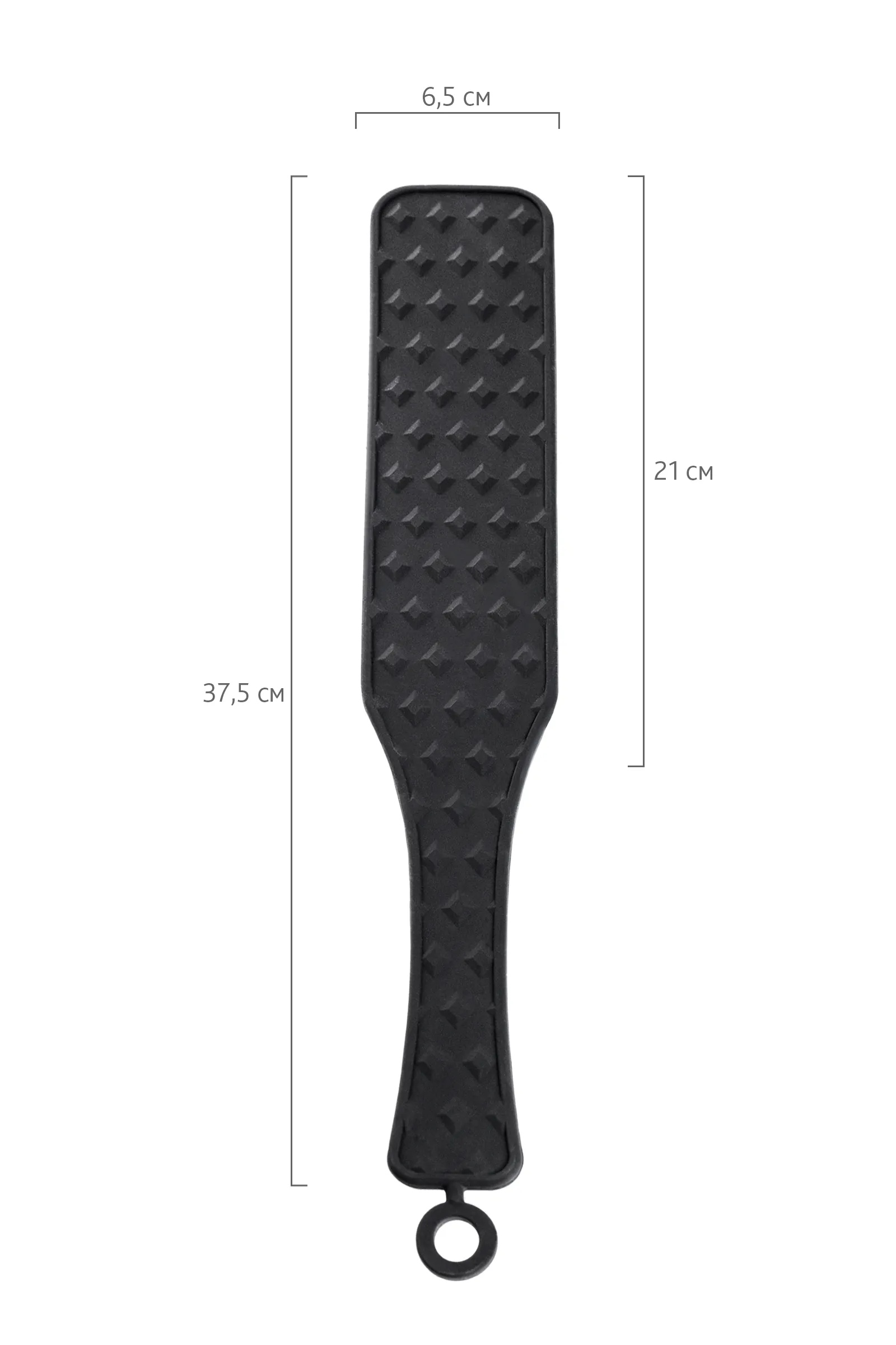Шлепалка Знаменитый пэддл - аксессуар для наказания, заменяющий ладонь. Шлепки могут быть мягкими и жесткими в зависимости от вашего настроения. Полностью силиконовая шлепалка приятна в использовании для обоих партнеров. С одной стороны она покрыта "бриллиантовым" рельефом и при сильных шлепках оставит на коже соответствующий узор. С другой стороны она абсолютно гладкая и ощущения от наказания будут более мягкими. Общая длина 37,5 см Рабочая длина 21 см Ширина 6,5 см Материал: силикон В фотосессии на модели использованы пэстис Theatre 705006