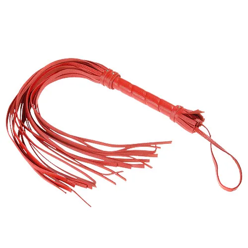—Плеть гладкая (флогер) красная из кожи с жесткой рукоятью общей длиной 65 см 3010-2