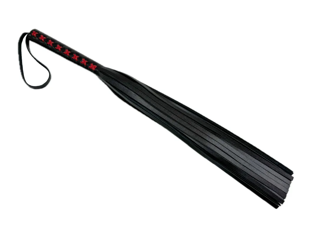 Плеть из натуральной кожи Sex Game - уникальная модель, выполненная из цельного куска гладкой натуральной кожи высокого качества, в классическом черном цвете. Плеть очень пышная и богатая, в ней 50 хвостов! На рукоятке находится плетение, выполненное красной кожей, что придает особый шарм, Общая длина аксессуара 57см, длина хвостов 40см. Благодаря своей цельной конструкции, данная плеть прослужит Вам долго, хвосты не оторвутся и сохранят свой благородный вид, аксессуар очень надежный и красивый. Для удобства на рукоятке имеется кожаная петелька. Материал: натуральная кожа