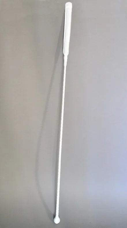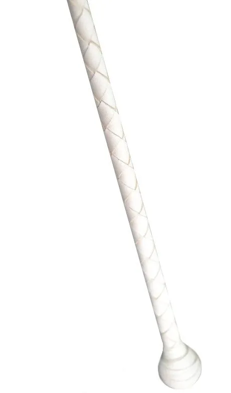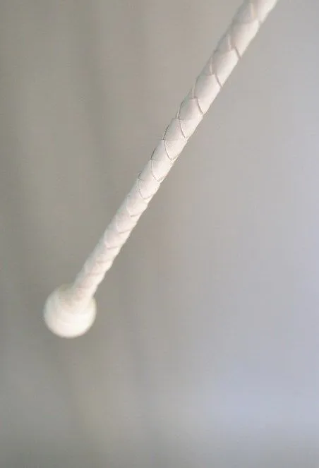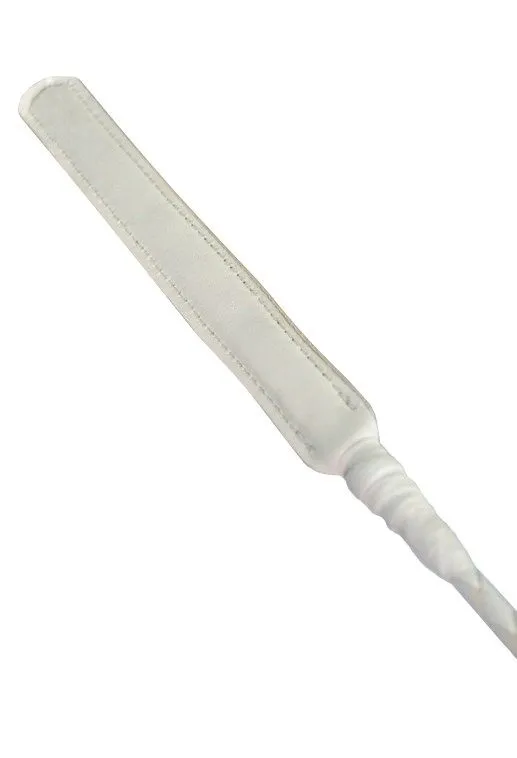 Этот стек длиной 85 см состоит из гибкой основы, овитой натуральной кожей белого цвета, наконечника в виде лопатки и ручки с шариком на конце. Стек можно применять как для легких похлопываний, так и для более серьезных наказаний. Также он идеально подходит в качестве указки.