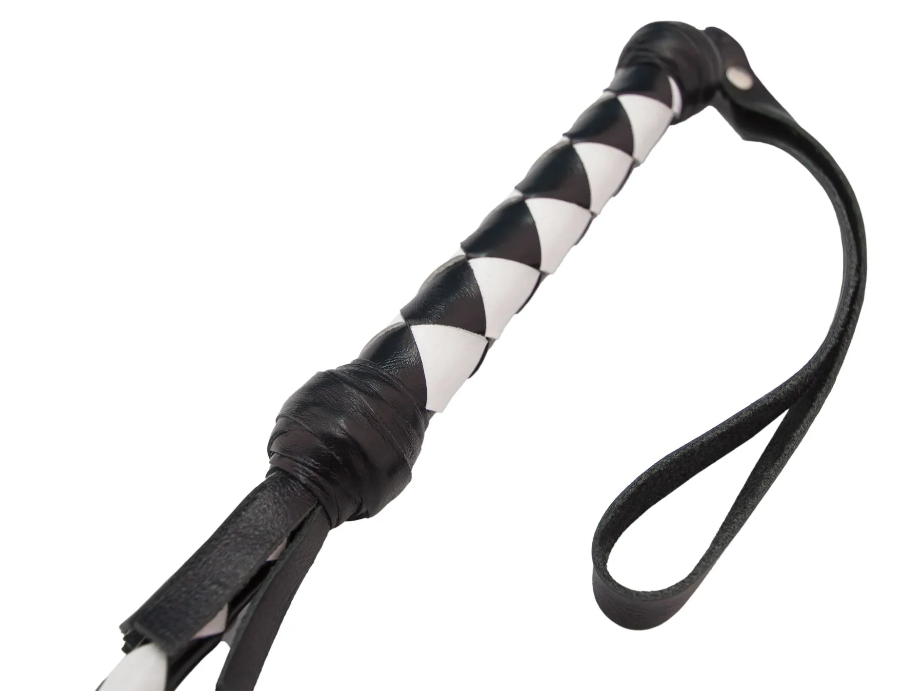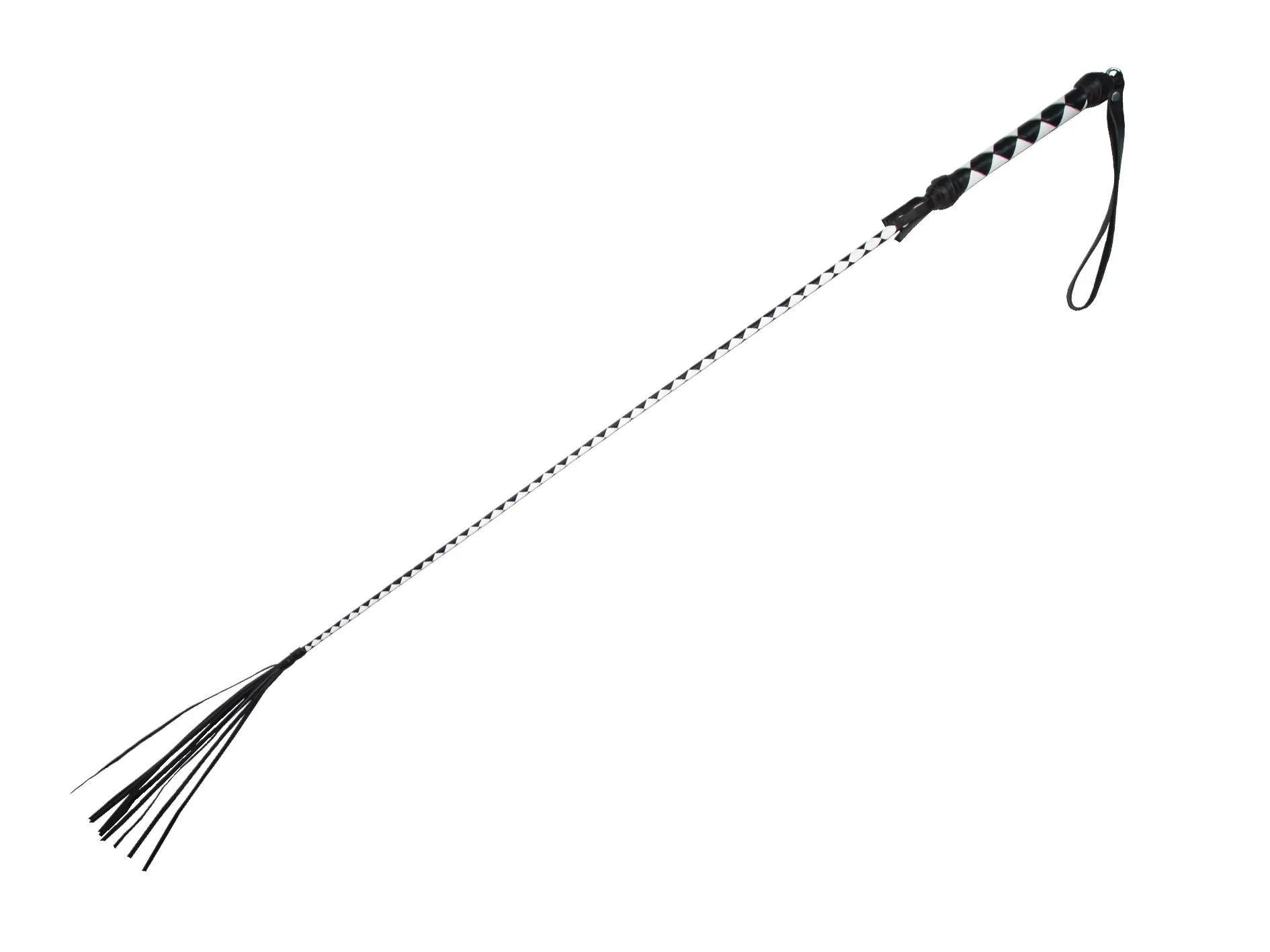 Этот стек длиной 85 см от компании "Подиум" состоит из гибкой основы, овитой натуральной черной и белой кожей, наконечника (в ассортименте) и петли для надевания на руку. Стек можно применять как для легких похлопываний, чтобы разогреть партнера, так и для более ощутимых ударов. Каждый удар этого девайса будет нежно бить по коже и разносить удар по всему телу, отдаваясь приятными возбуждающими волнами. Также использовать этот длинный стек можно и в качестве указки.