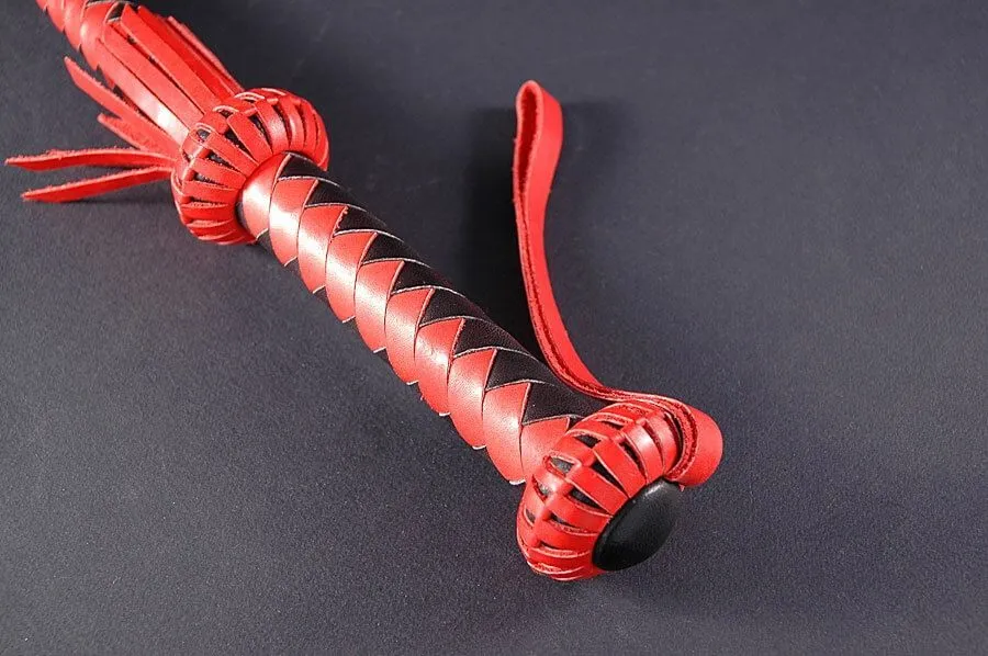 "Поддай жару" от бренда Beastly - это кнут с твердой ручкой, украшенный ограничителями в виде фонариков и юбочкой. Он сделан из натуральной кожи черного и красного цветов. Ручка с петелькой для фиксации на запястье переходит в гибкое кнутовище на конус. При изготовлении кнута использовалось восьмиполосное плетение "елочкой". На его конце есть узелок и короткая кисточка, которую можно будет применять как для нанесения ударов, так и для дразнящих поглаживаний. Используйте этот аксессуар для нанесения ощутимых ударов, чтобы партнер прочувствовал все силу Вашей любви.