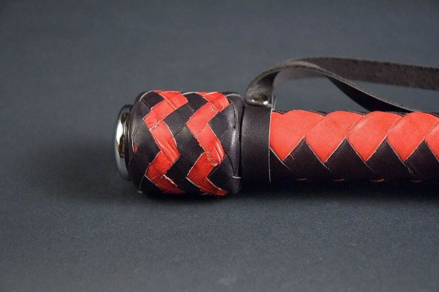 Короткий кнут "Ответный выпад" с 8 хвостами от бренда Beastly добавит острых ощущений в интимную жизнь пары. Такой аксессуар пригодится во время ролевых игр с элементами БДСМ, когда Вы хотите наказать своего партнера и преподать ему урок послушания. Кнут сделан из натуральной кожи черного и красного цветов, у него есть гибкая плетеная ручка, переходящая в кнутовище для руки в виде цилиндра с навершием и петлей для фиксации. Плетение восьмиполосное "елочкой" с узелком и кисточкой на конце, которую можно будет применять как для нанесения ударов, так и для дразнящих поглаживаний.