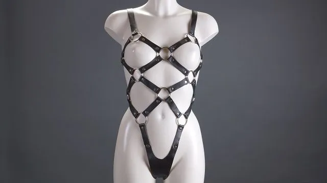 Этот комплект придаст Вашему образу страстности и сексуальности, поможет в создании атмосферы, нужной для проведения интимного вечера в стиле БДСМ. Сбруя выполнена из мягкой натуральной кожи и удобна в ношении. Ремешки регулируемые.