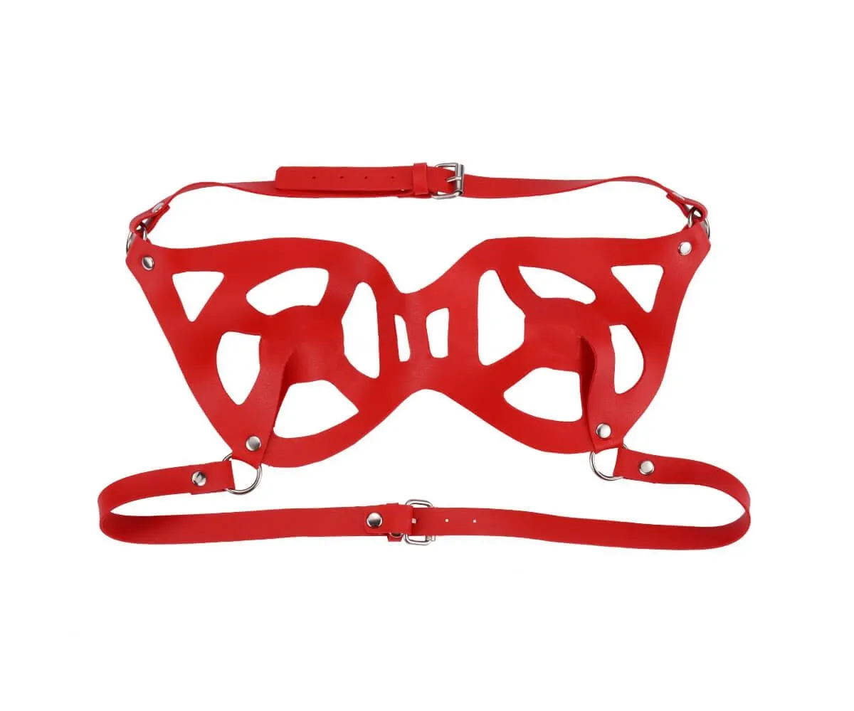 Нагрудник от бренда Lapin Rose сделан в бондажном стиле из полиуретана и металлической фурнитуры. Он станет одной из отличительных деталей ролевого интимного костюма или костюма для игр с элементами БДСМ. Хотя бюстгальтер прикроет соски, благодаря нескольким вырезам на чашках он намекнет на форму груди. Надетый на голое тело, он способен возбудить и вызвать желание, а также создать необходимую атмосферу, предвещающую смелые эксперименты и интимные подвиги.