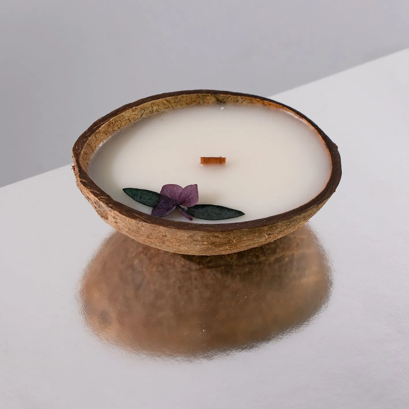 Наполните свой дом теплом и мягким светом при помощи свечи в кокосовой скорлупе с уютным ароматом цветочного дерева. Кокосовый воск медленно плавится, заставляя душистое масло отдавать свой аромат. Деревянный фитилёк, словно камин, издаёт при горении треск и погружает вас в состояние релакса и комфорта.