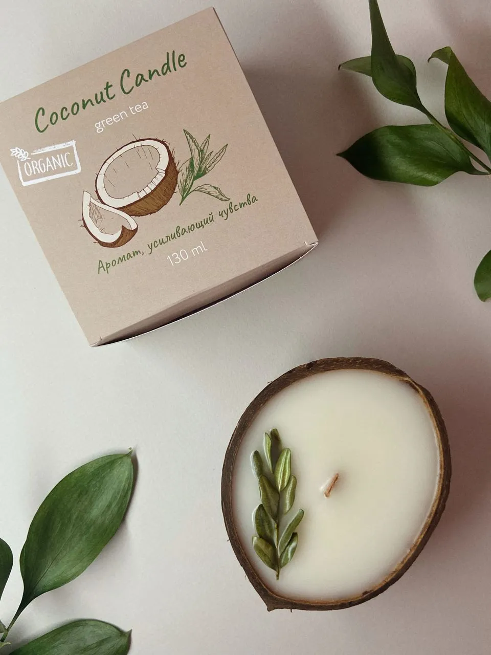 —Свеча ароматическая Time Heat Зеленый чай в кокосе