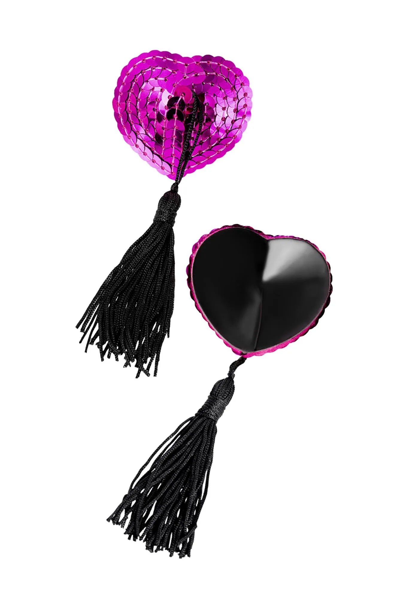 Пэстис Erolanta Denise, в форме сердец, с кисточками, розовый-чёрный