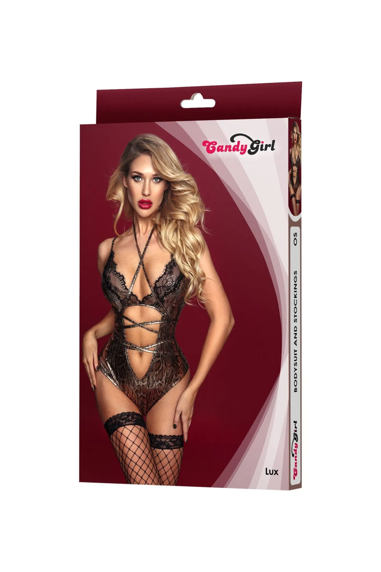 Боди Candy Girl® Lux создано для того чтобы сразить партнера наповал новым эротическим образом! Облегающий крой материала wetlook подчеркивает соблазнительные изгибы тела как вторая кожа. Благородный металлический блеск змеиного принта роскошно переливается и мерцает в приглушенном свете. Кружевные вставки на бюсте акцентируют внимание на груди, а вырез в области животика открывает чувствительные зоны тела для поцелуев. Регулируемые бретели с металлической фурнитурой помогают добиться посадки по фигуре. Тонкий поясок добавляет возбуждения в процессе подготовки образа и становится дополнительным аксессуаром для игр с партнером. Чулки из крупной сетки с кружевной резинкой и усиленным мыском входят в комплект.