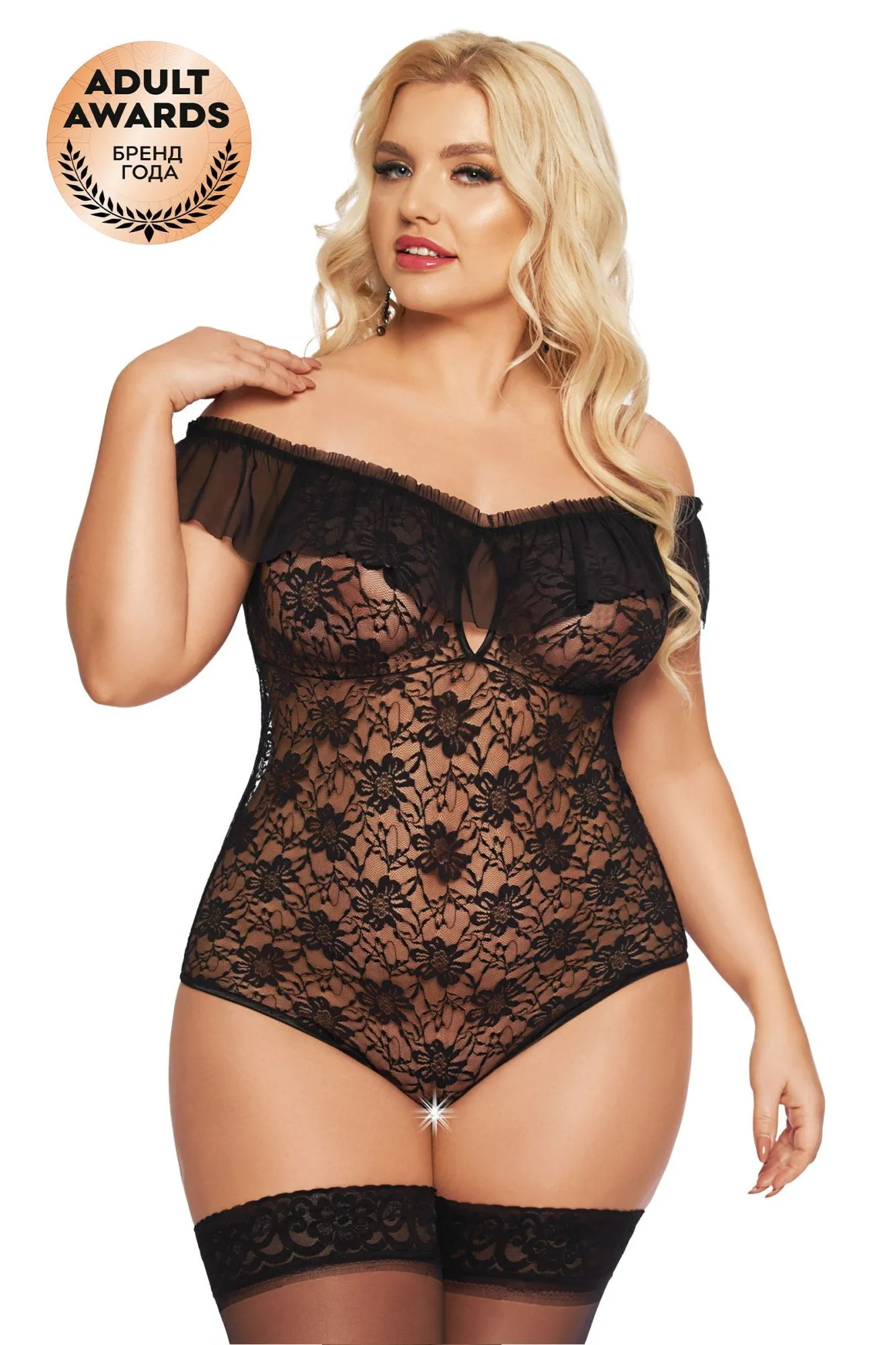 Полупрозрачное ажурное боди SoftLine Collection производит эффект бомбы. Ещё бы! Эффектный цветочный орнамент завораживает. Рюша из тонкой сетки слегка прикрывает грудь, а открытая спинка подчёркивает страстность.