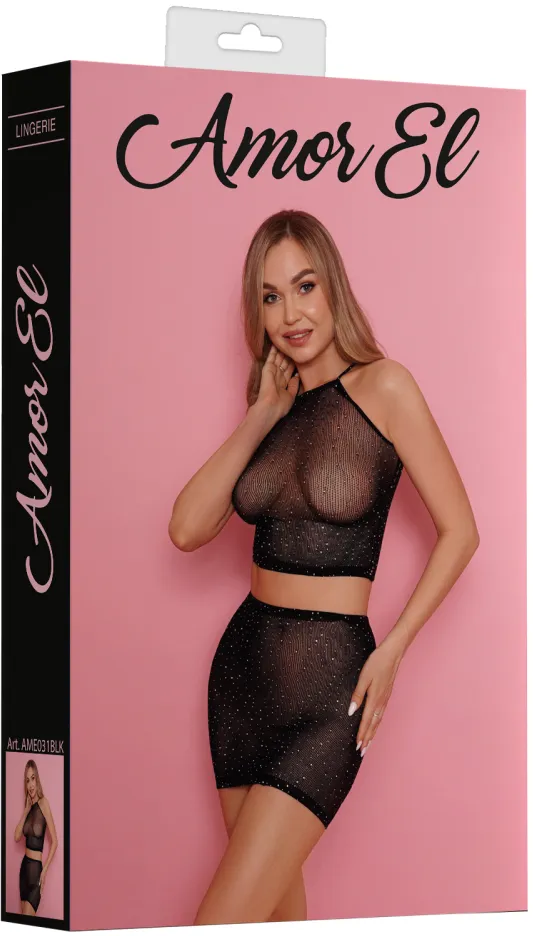 Комплект из сетки со стразами, состоящий из топа и соблазнительной юбки.