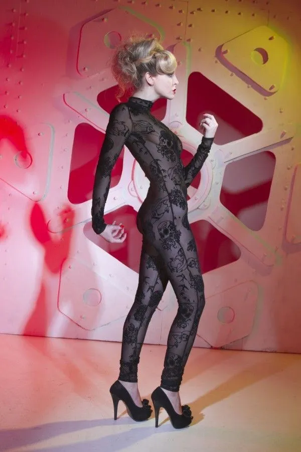 Комбинезон от французского модельера Patrice Catanzaro добавит Вашему образу страстности и сексуальности. Он отлично облегает фигуру, подчеркивая все ее достоинства и плавные изгибы. Комбинезон выполнен из прозрачного материала и декорирован узорами, напоминающими элементы татуировки. На молнии есть несколько ползунков, которые позволят Вам сделать отверстия в нужных местах. Благодаря подобной немного провокационной задумке, Вы сможете сами определять когда и где Ваш избранник сможет насладиться видом Вашего обнаженного тела.