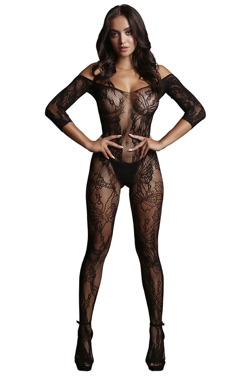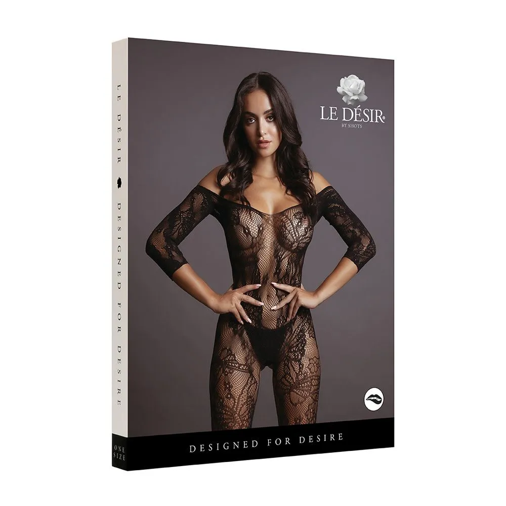 Lace Sleeved Bodystocking - боди-комбинезон с рукавами 3/4 и открытым доступом. Дизайн выполнен в виде сетки с кружевным рисунком. Его можно носит как полностью на плечах, так и приспустить на руки. Кетсьюит имеет открытый шаговый шов.