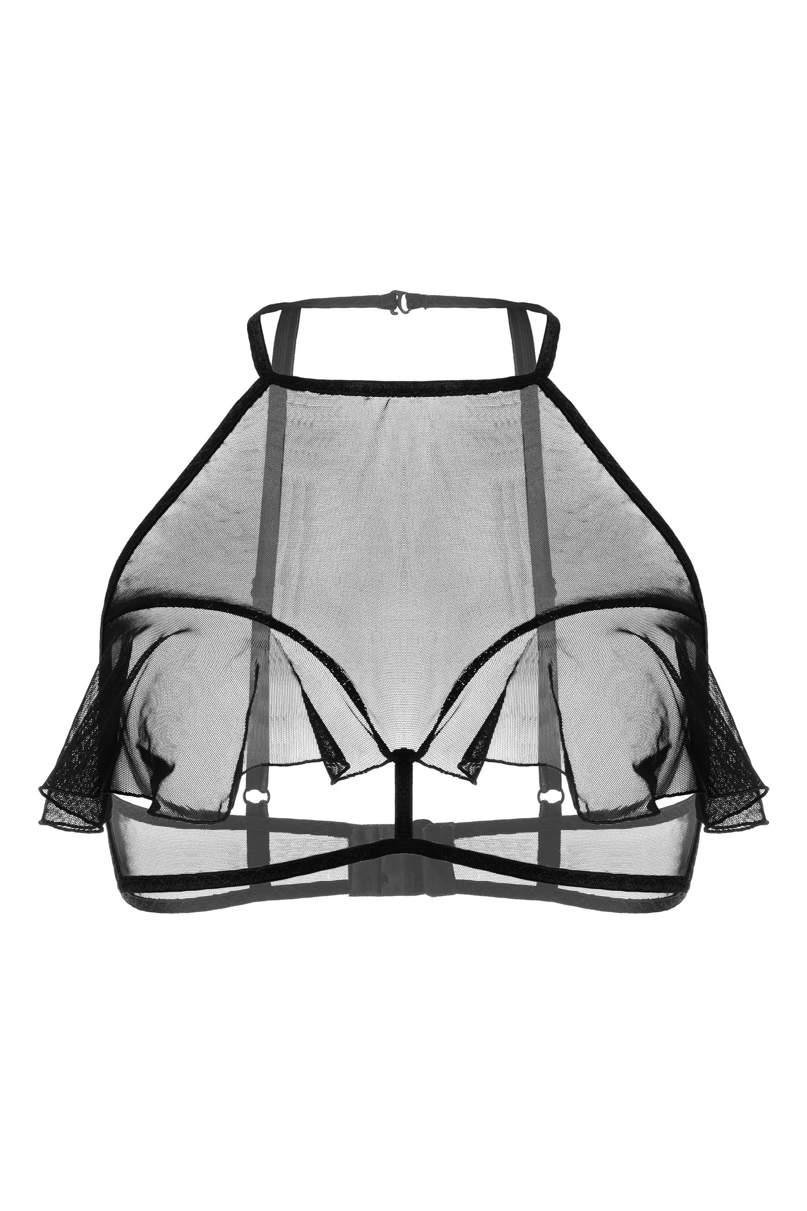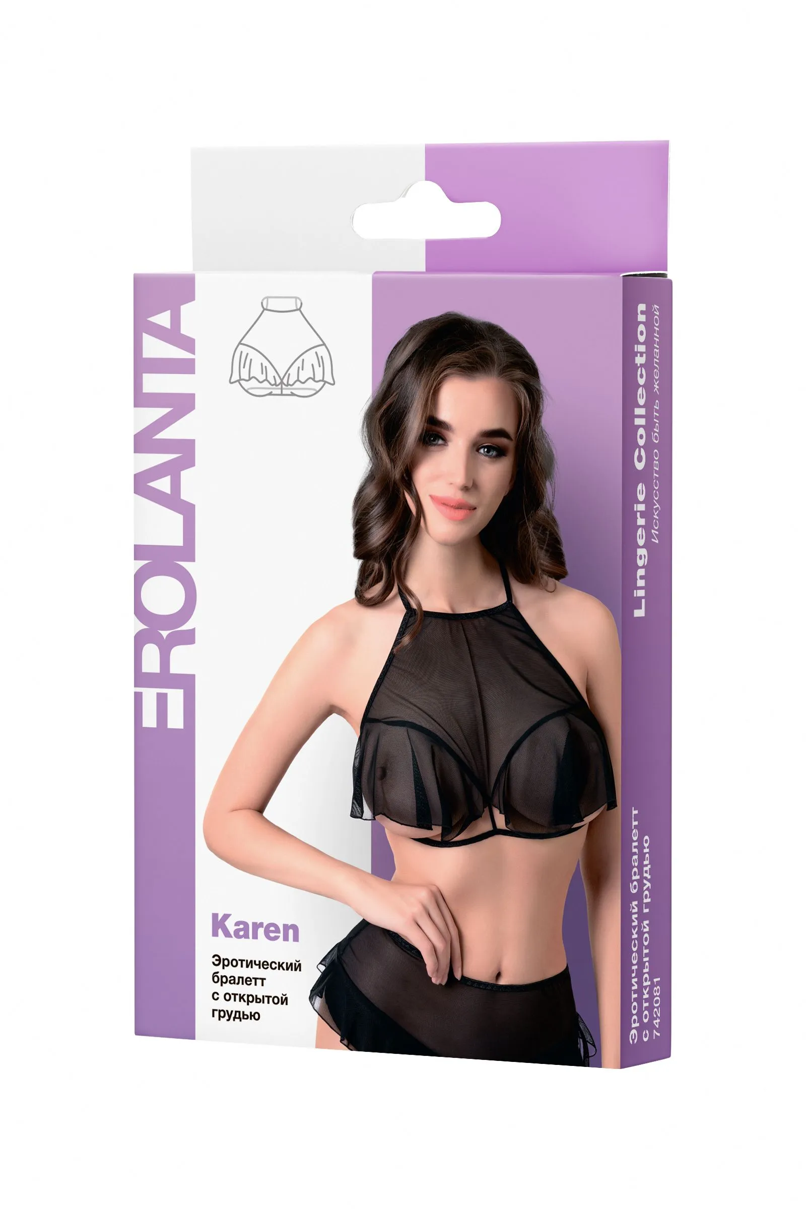Откровенный бралетт Karen от Erolanta® не оставит вашего мужчину равнодушным. Мягкий топ из невесомой эластичной сетки приковывает взгляд к линии декольте. Очаровательные воланы игриво открывают доступ к груди. А тонкие регулируемые бретели, застежка на шее и многорядная застежка на спине обеспечивают комфортную посадку, которая позволит чувствовать себя невероятно уверенно. Заставьте сердце любимого биться чаще с бралетт Karen от Erolanta®. На видео бралетт Erolanta® Karen дополнен идеально сочетающимися трусиками Erolanta® Lana.