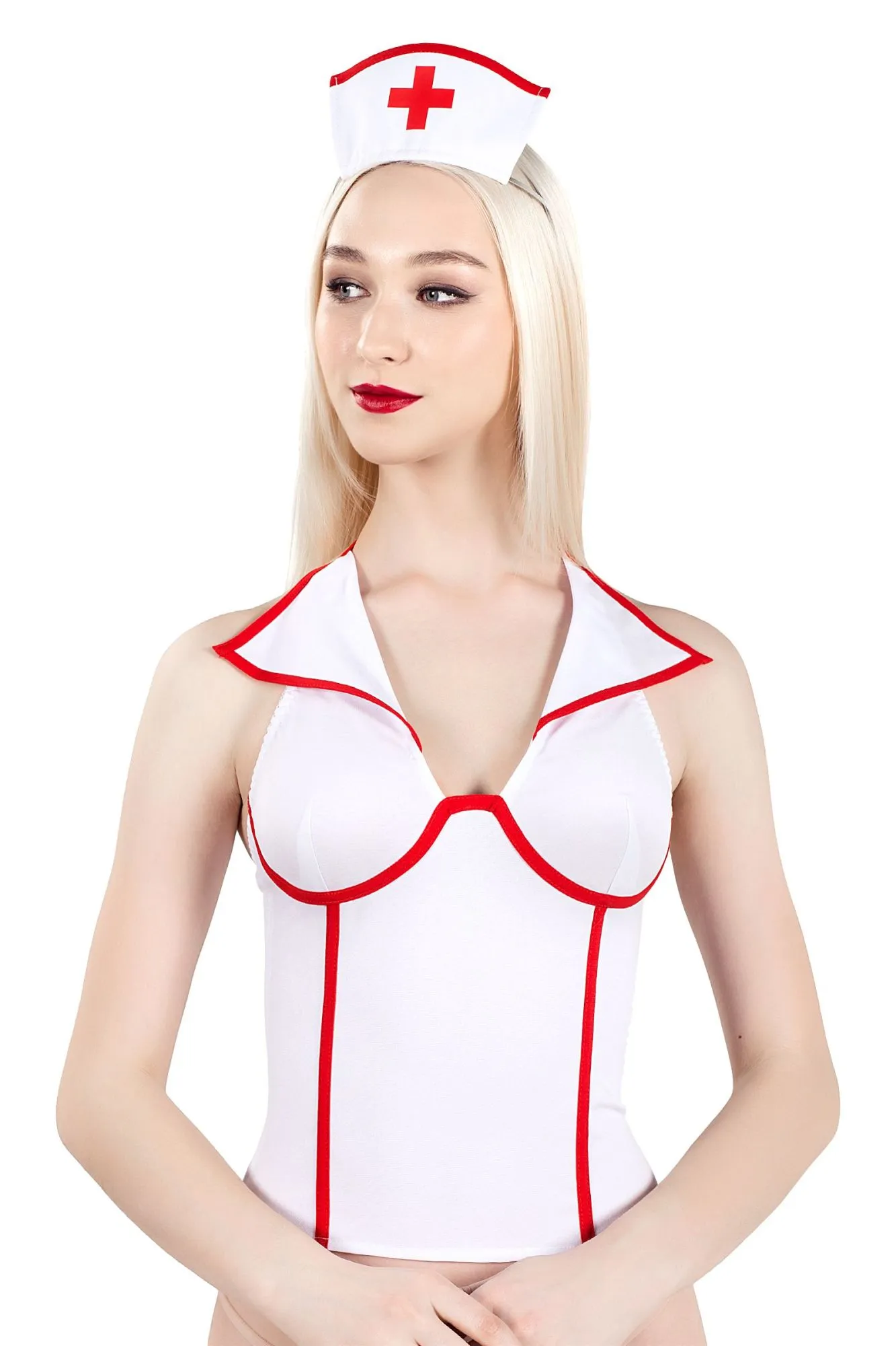 Верхняя часть костюма «Медсестра», Pecado BDSM, корсет, головной убор, бело-красный, 42