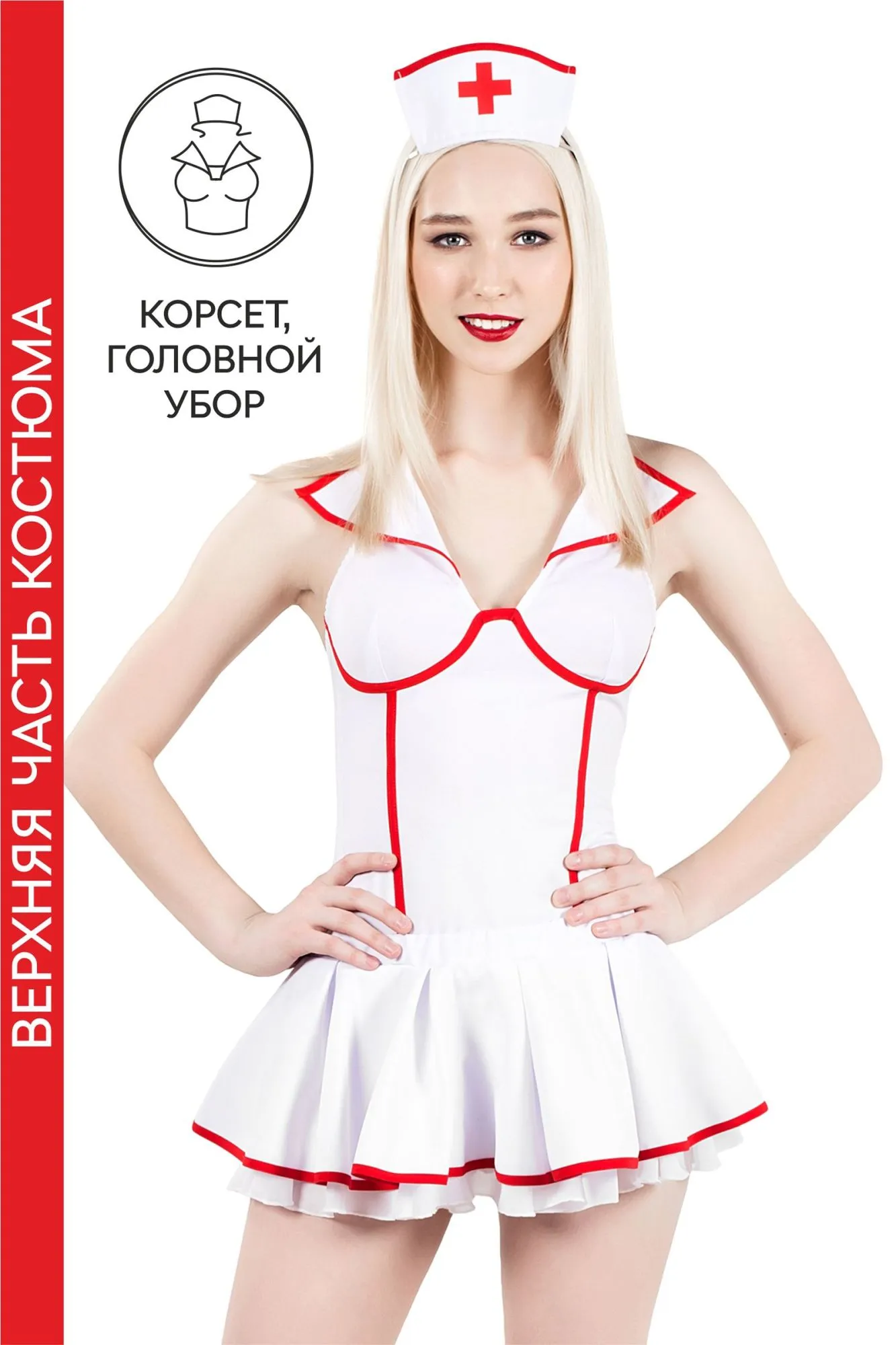 —Верхняя часть костюма «Медсестра», Pecado BDSM, корсет, головной убор, бело-красный, 42