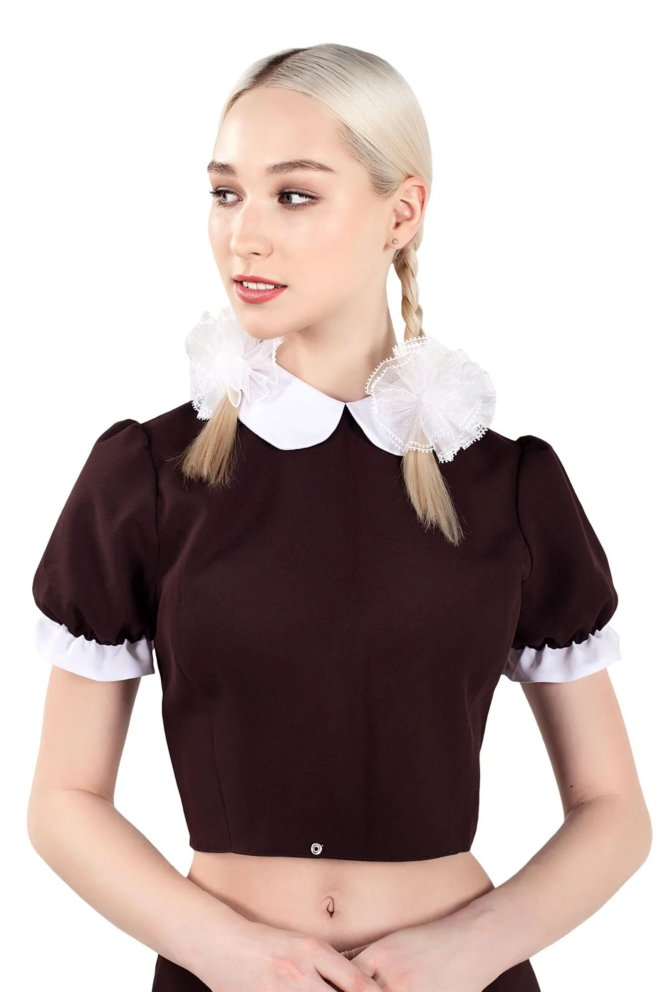 —Верхняя часть костюма «Русская школьница», Pecado BDSM, топ, банты, коричнево-белый, 40