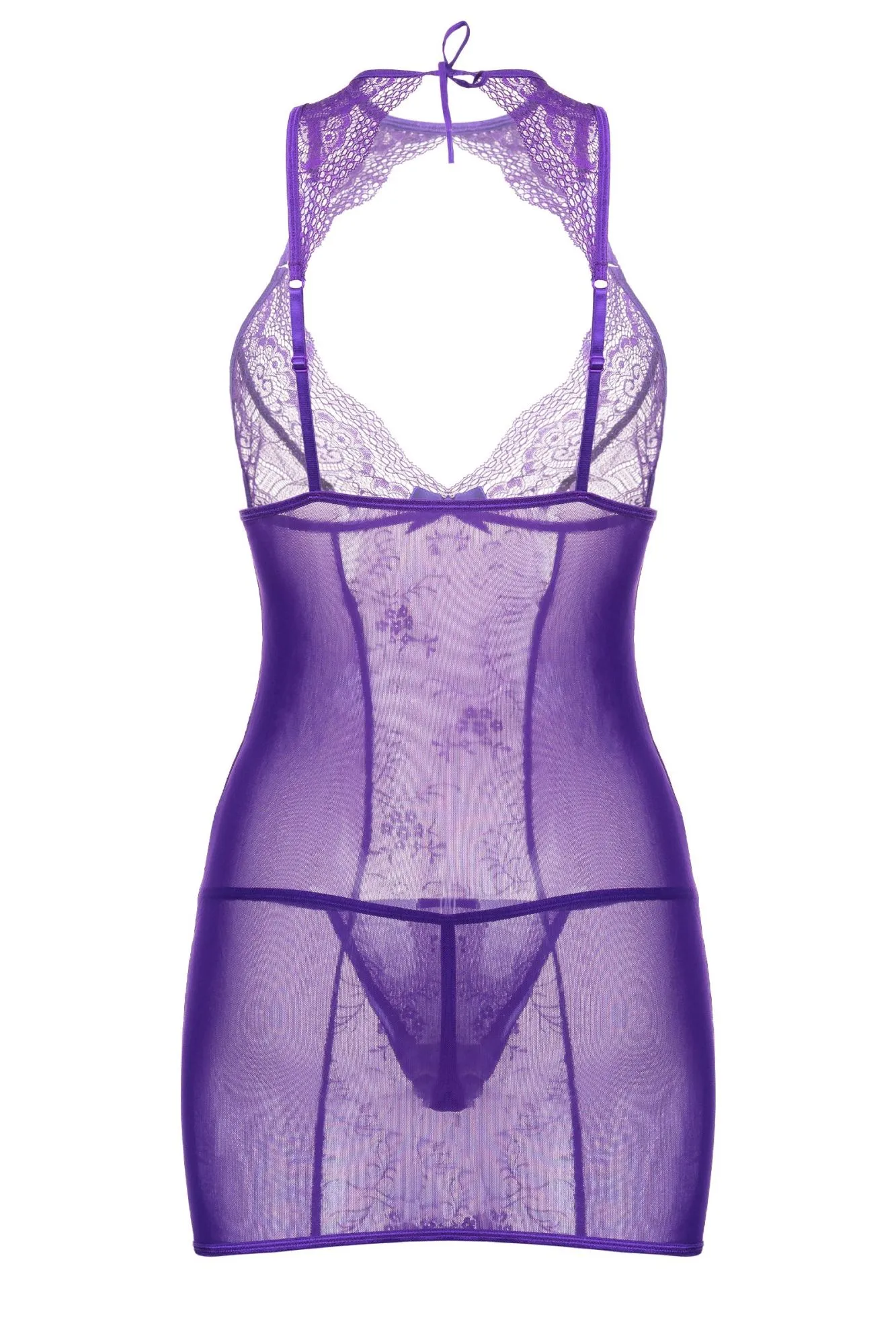 Все внимание на грудь! Кружевное фигурное декольте комбинации Candy Girl® Scarlett притягивает к себе все взгляды. Сатиновый бантик на уровне груди придает кокетства образу. Изящная кружевная спинка, регулируемые бретели и завязка на шее обеспечивают идеальную посадку лифа. Облегающий крой подчеркивает манящие изгибы силуэта. Вертикальные швы и комбинирование кружевных и сетчатых вставок визуально добавляют фигуре стройности. Эластичные ткани обеспечивают комфортное ношение. Т-стринги идеально завершают образ.