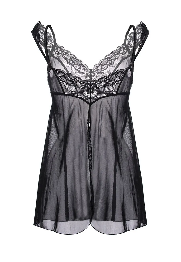 Комбинация бэби-долл c разрезом сзади Erolanta Sofia, черный (42-44)