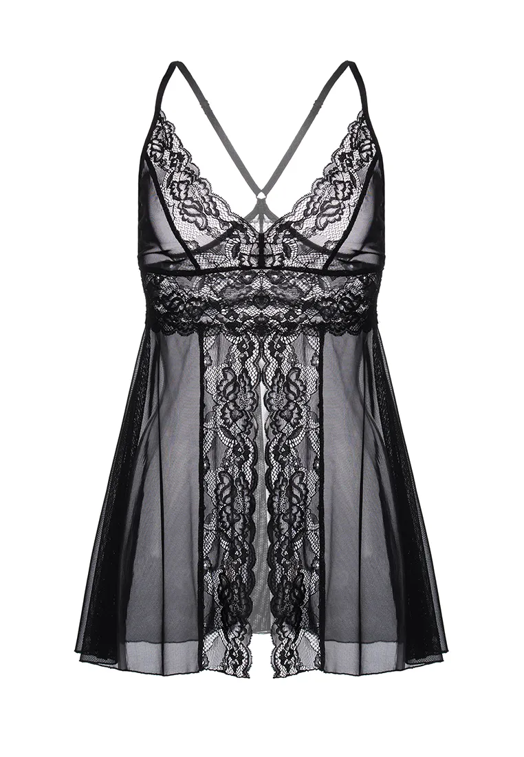 Комбинация бэби-долл с разрезом спереди Erolanta Nataliya, черный (54-56) в пакете