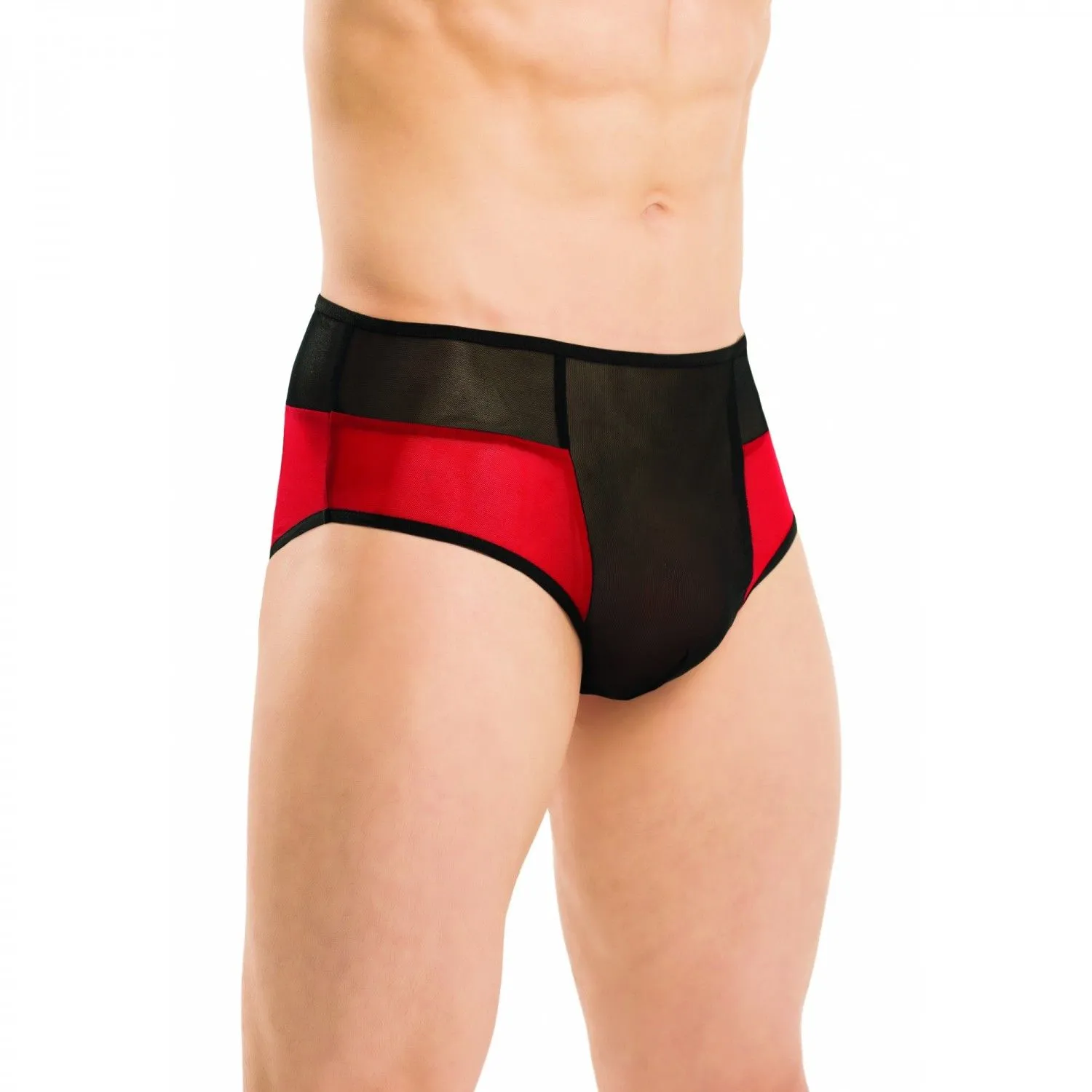 Мужские чёрно-красные трусы от компании FlirtON, выполненные в нестандартном запоминающемся дизайне с большим вырезом сзади.