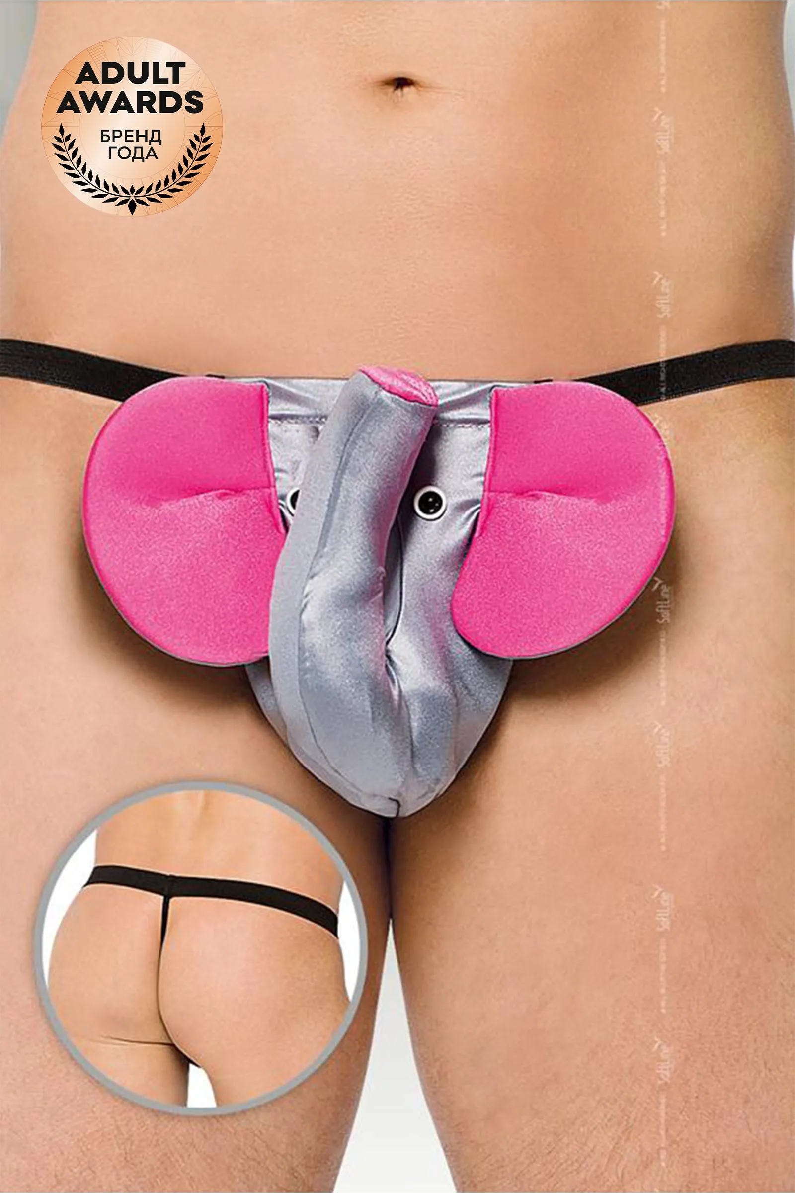Стринги с забавной мордочкой слоненка серого цвета.
