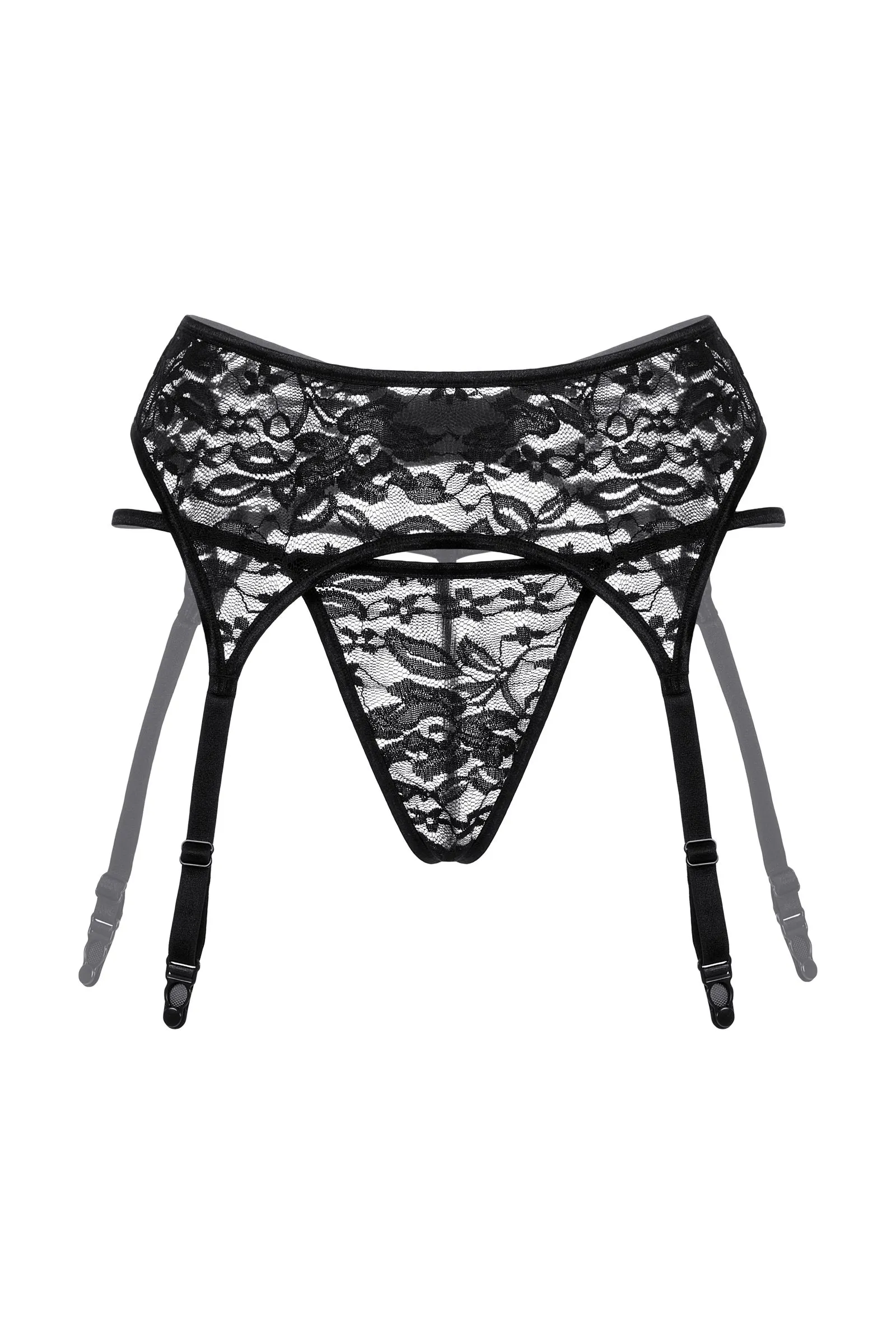 —Пояс для чулок и стринги SoftLine Collection из кружева, черный, M/L