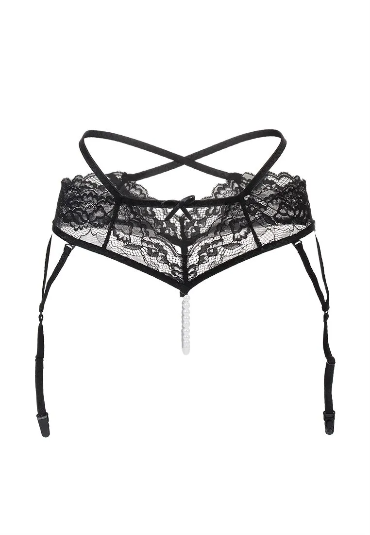 Эротические трусики-пояс с жемчужной нитью Erolanta Wendy кружевные, черный 50-52