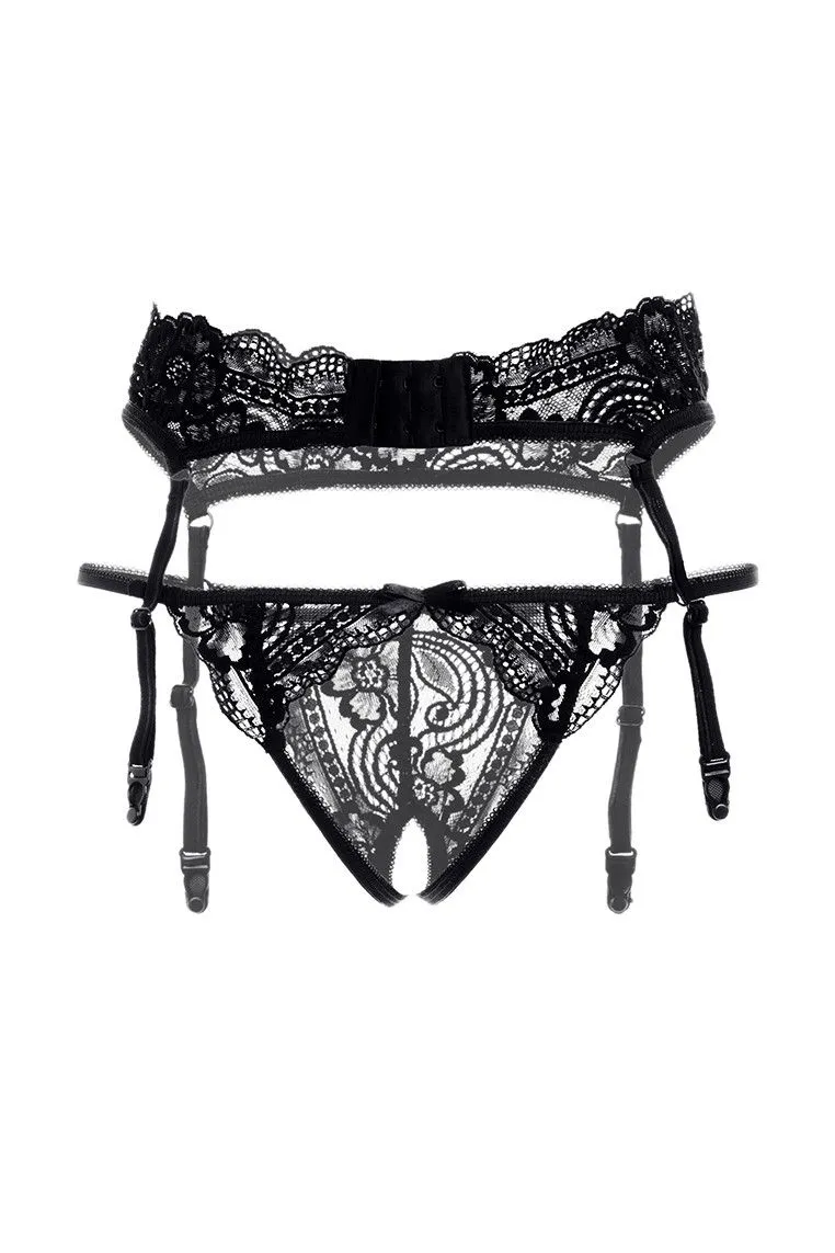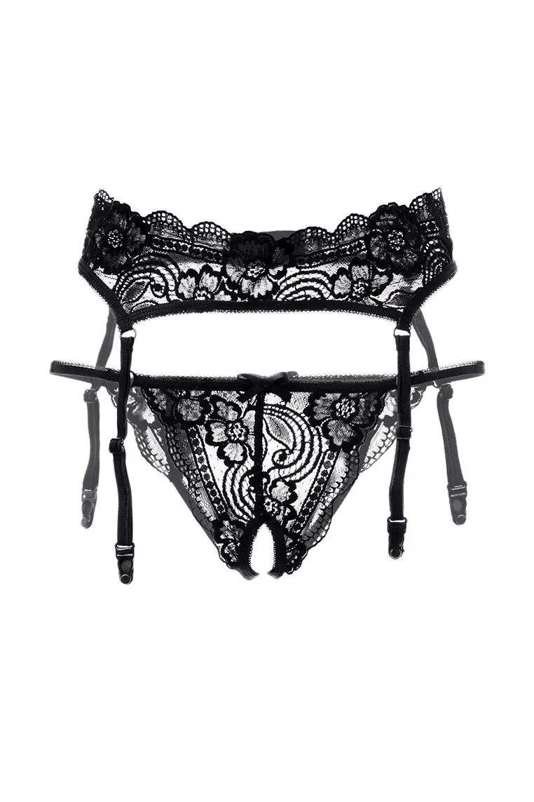 Пояс для чулок и кружевные стринги Erolanta Deborah черный