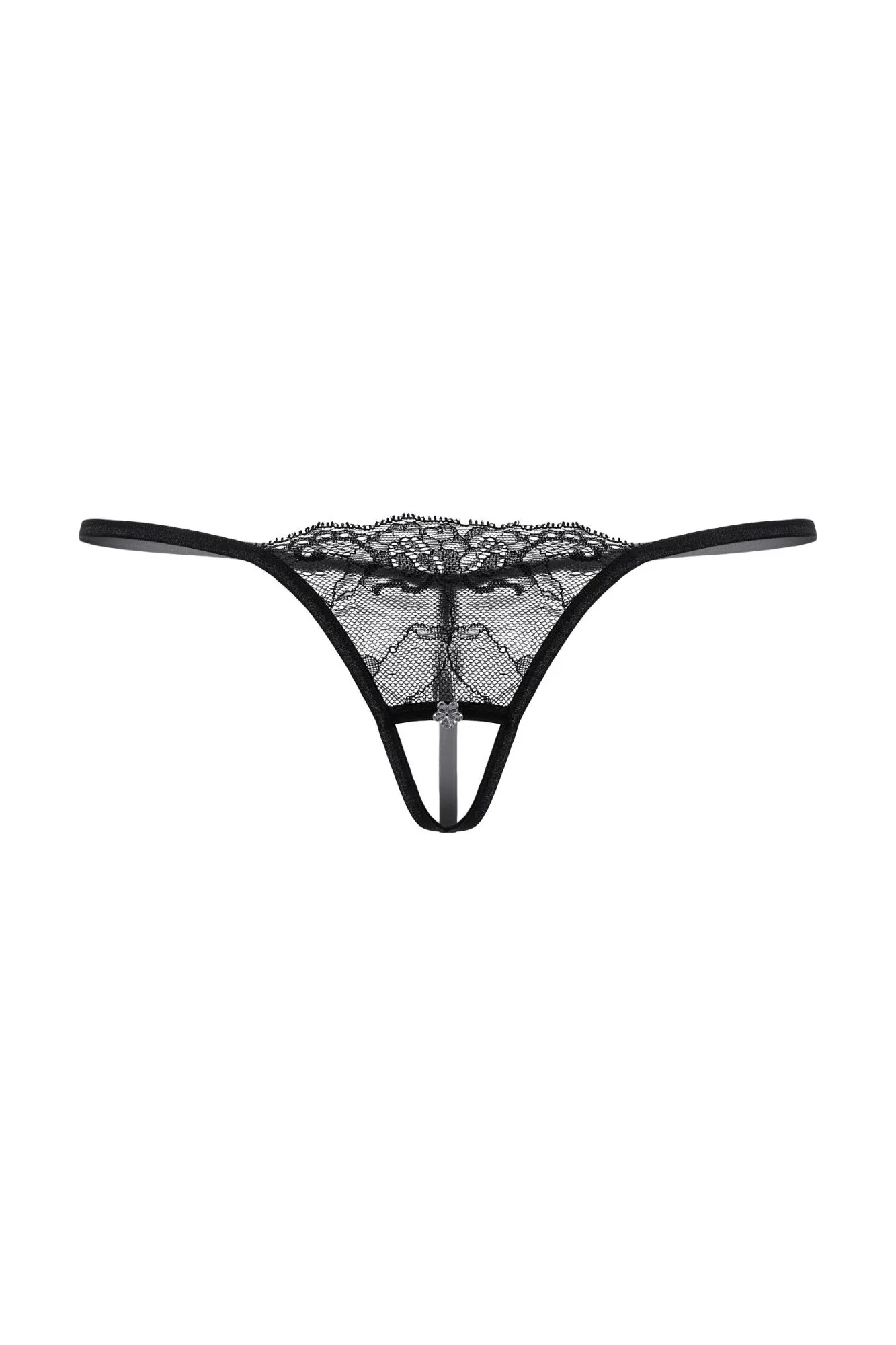 Т-стринги кружевные с открытым доступом. Спереди декорированы украшением со стразами.