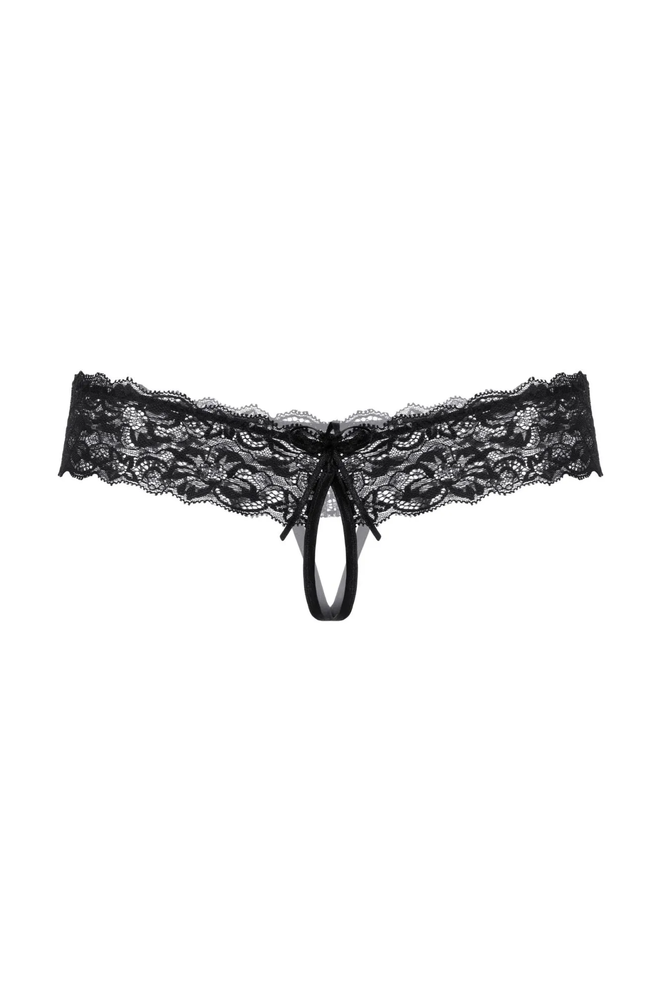 Трусики кружевные с открытым доступом выполнены из роскошного кружева. Широкая кружевная резинка с необычно углубленным верхним краем подчеркивает соблазнительную линию бедер. Спереди декорированы кокетливым бантиком.
