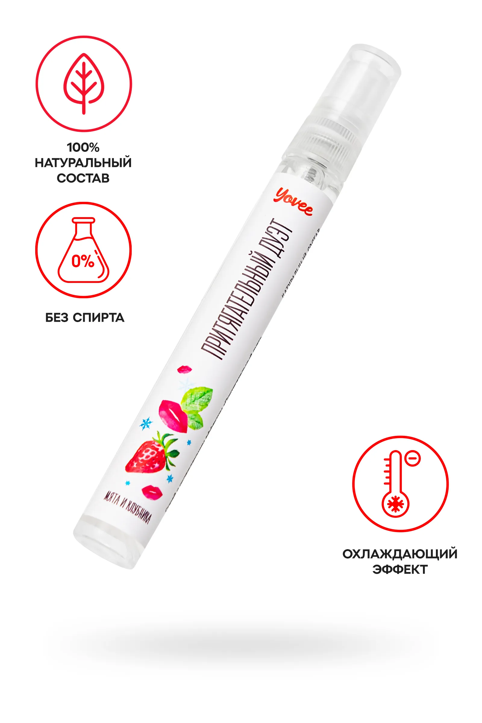 —Оральный спрей Yovee «Притягательный дуэт», со вкусом мяты и клубники, охлаждающе-возбуждающий, 10мл