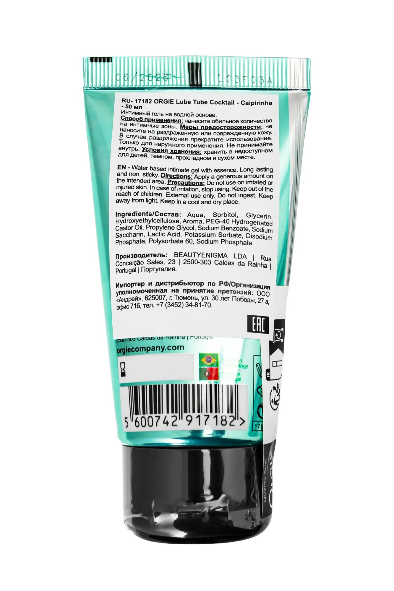 —Интимный гель Orgie LUBE TUBE COCKTAIL на водной основе, со вкусом кайпириньи, 50 мл