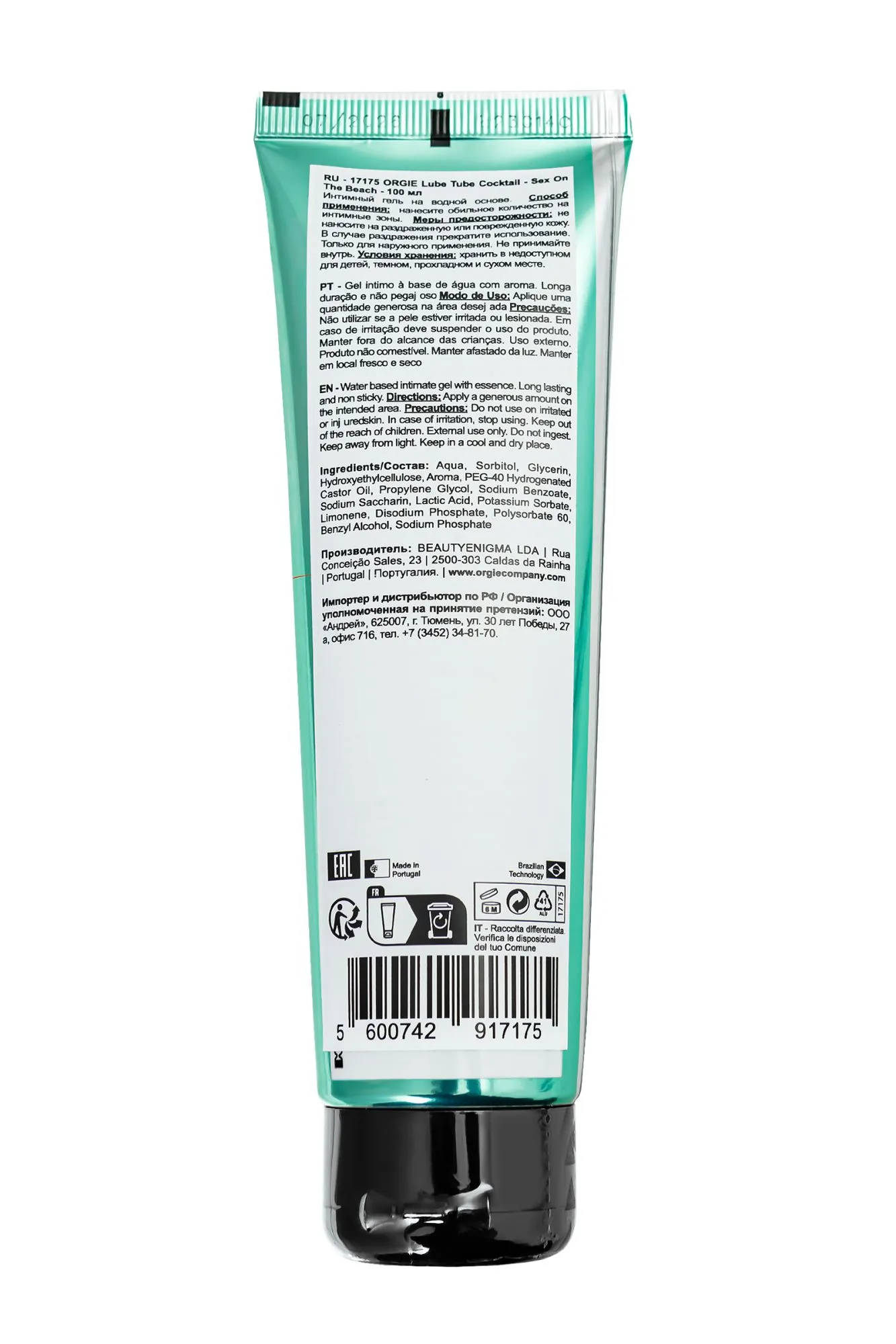 —Интимный гель Orgie LUBE TUBE на водной основе, со вкусом коктейля секс на пляже, 100 мл