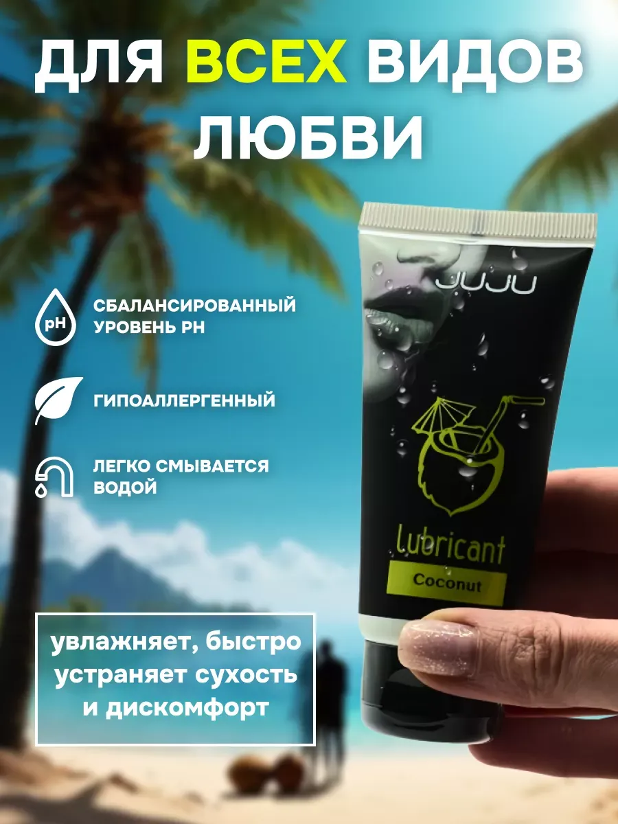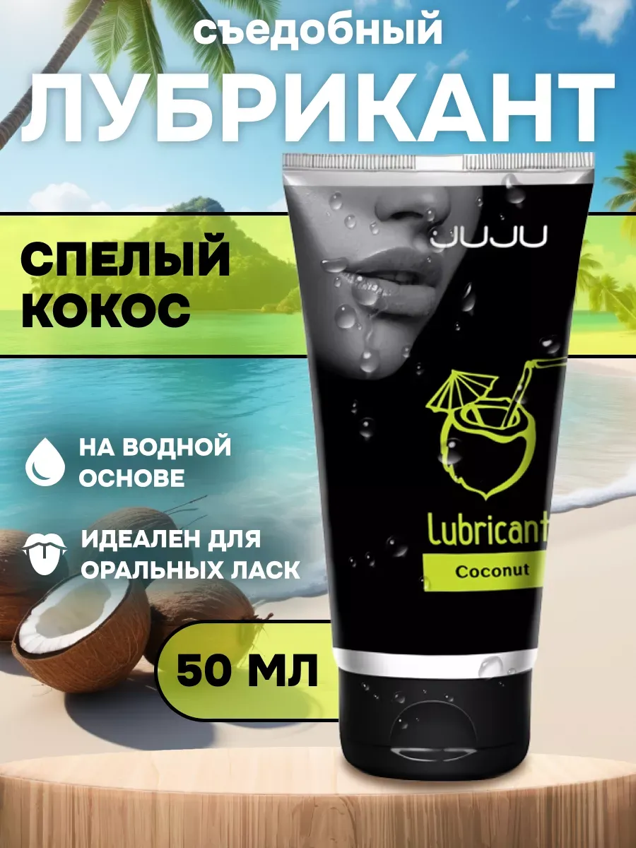 Съедобный лубрикант со вкусом кокоса отлично подойдет для любого вида близости. Водная основа смазки позволяет разнообразить интимную жизнь, обеспечивая продолжительное шелковистое скольжение. Лубрикант можно использовать с любыми интим игрушками, а также с презервативами. Состав: вода очищенная, глицерин, гидроксиэтилцеллюлоза, ароматизатор пищевой, бензоат натрия, сорбат калия, пропиленгликоль, сахаринат натрия, лимонная кислота, объем – 50 мл, производитель – JuJu (Россия).  срок годности-3 года.