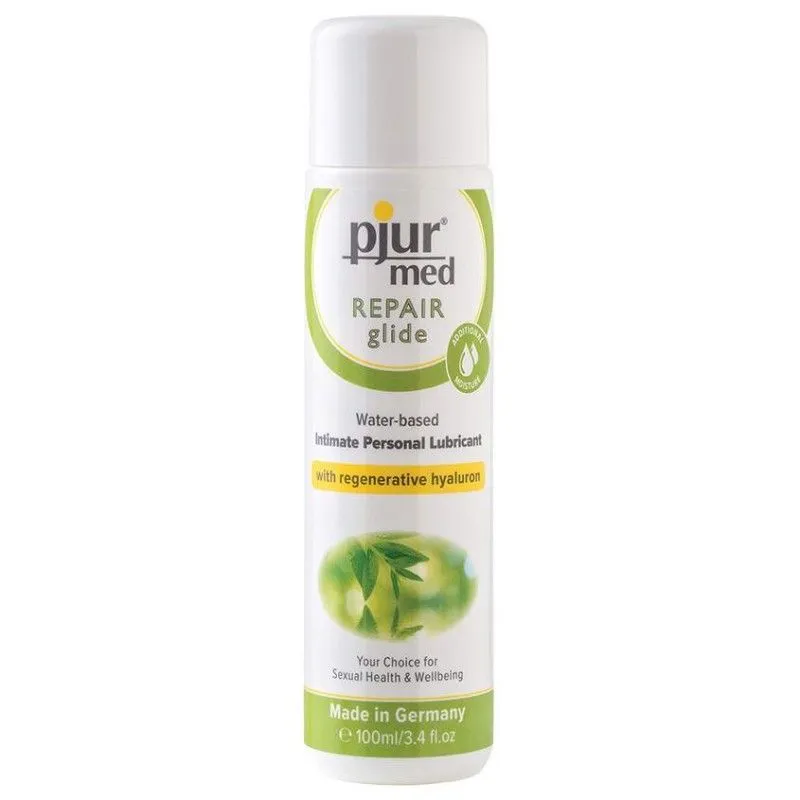 Смазка на водной основе Pjur Med Repair Glide содержит гиалурон для длительного смазывания. Гиалурон способен связывать большое количество воды, что значительно усиливает смазывающий эффект продукта. Гиалурон также способствует активной регенерации кожи, поэтому идеально подходит для сухой и чувствительной кожи в области гениталий.