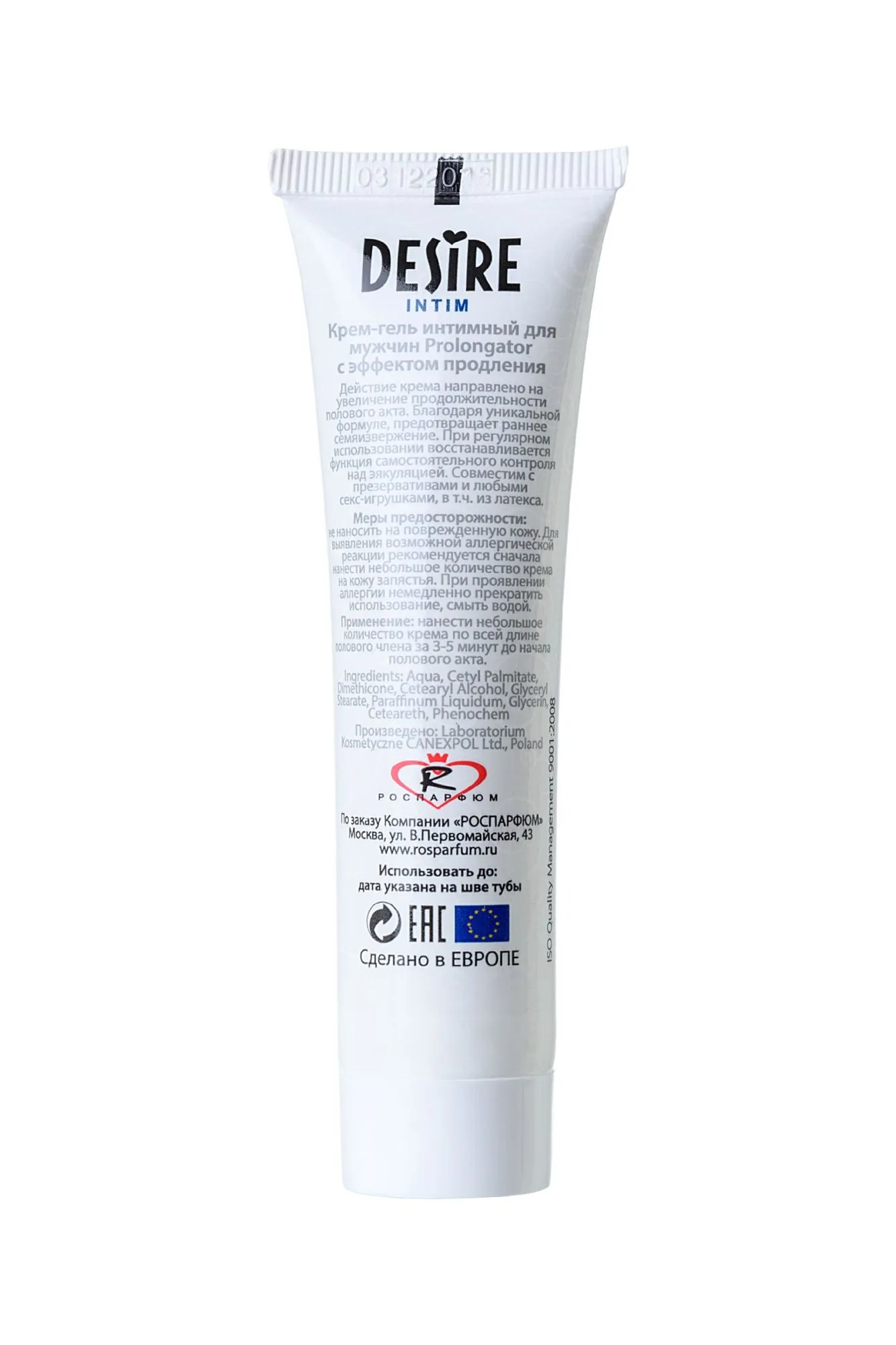Интимный крем «DESIRE Intim» «PROLONGATOR» позволяет существенно увеличить длительность сношения. За счёт уникального состава крема, а крем обладает слегка охлаждающим эффектом, нервные окончания на половом органе мужчины «притупляются» и семяизвержение задерживается на 15-20 минут. При регулярном использовании нормализуется самостоятельная функция регулирующая семяизвержение. ВАЖНО! Попросите партнёршу или самостоятельно, выдавить крем для продления полового акта размером с горошину на чистую ладонь, равномерно распределить между ладонями и лёгкими прикосновениями нанести крем на ствол пениса по всей длине за 3-5 минут до начала полового акта. Дозировку увеличивать постепенно, по мере необходимости. Противопоказаний не имеет. Возможна индивидуальная чувствительность. Без труда смывается тёплой водой. Объём 30 мл. Рекомендуем использовать с презервативами из различных материалов. Это средство «удовлетворит» обоих!