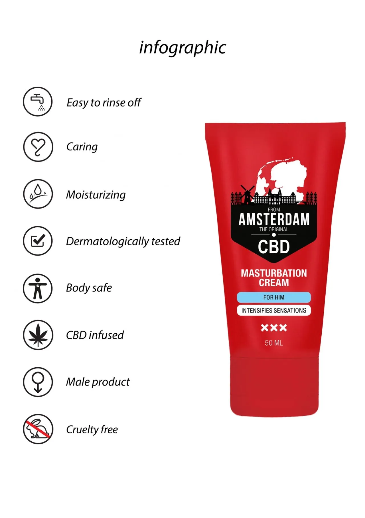 Крем для мастурбации для Него CBD from Amsterdam содержит активный ингредиент CBD (каннабидиол). Он интенсивно увлажняет кожу и обеспечивает долгое скольжение.