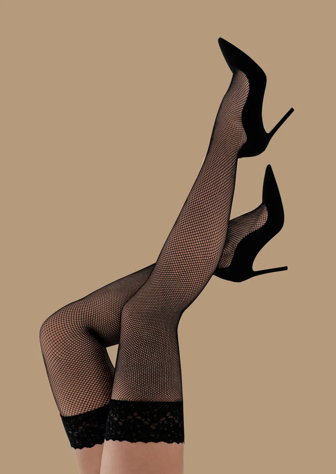 —Чулки черные в мелкую сетку с черным кружевом и силиконом