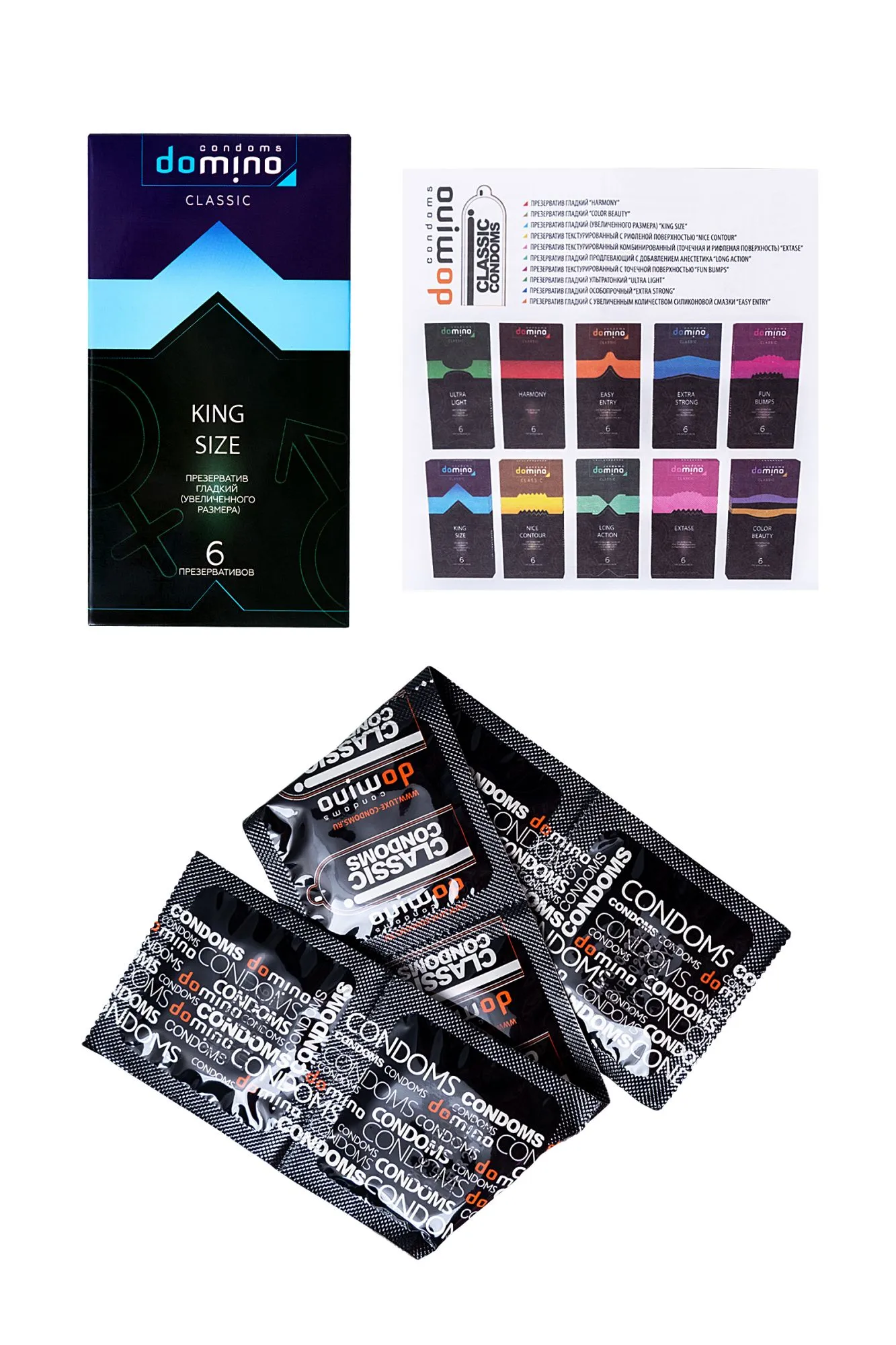 Для тех, кому нужен действительно королевский размер Luxe DOMINO CLASSIC создали презервативы King size увеличенного размера! С ними вы ощутите комфорт по-новому. Гладкие презервативы с накопителем из высококачественного латекса в смазке. Презервативы Luxe DOMINO изготовлены с тщательным соблюдением европейских технологий качества и прошли электронную проверку на прочность и целостность материалов. Luxe DOMINO CLASSIC King size не подведут в самый ответственный момент. Вам не придется думать о том, что он будет скатываться или соскальзывать. Номинальная длина – 19 мм, ширина - 52 мм, толщина стенок - 0,06 мм. Презервативы Luxe DOMINO CLASSIC King size – для по-настоящему больших мальчиков, которые уверены в себе и знают чего хотят. В стильной фирменной упаковке 6 штук