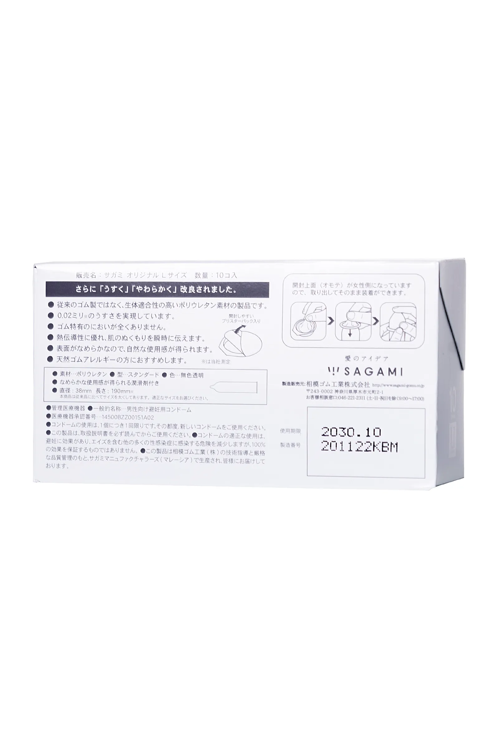—Презервативы Sagami, original 0.02, L-size, гладкие, 19 см, 5,8 см, 10 шт.