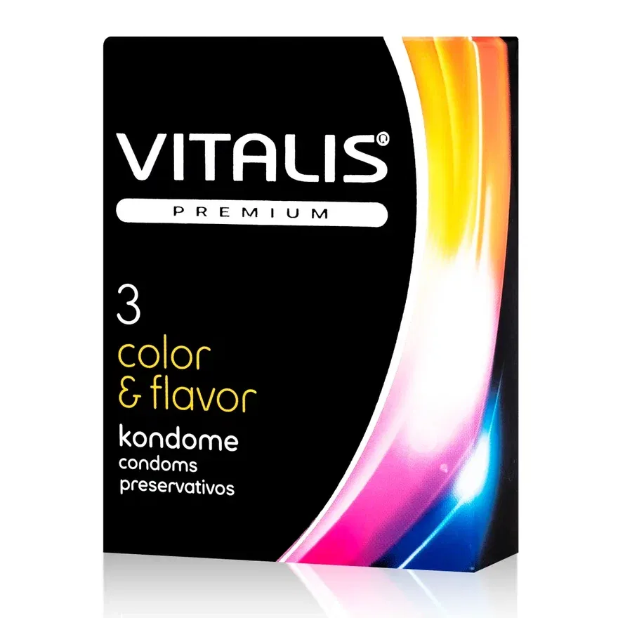 Презервативы различных цветов и ароматов внесут разнообразие в любовную жизнь. Дайте волю своей фантазии! Презервативы Vitalis Color & Flavor достаточно прочные, чтобы обеспечить вам защиту, но при этом почти не ощущаются. Ваш акт любви будет более ярким с разноцветными презервативами Vitalis, и сопровождать его будет лёгкая ароматная дымка – презервативы Vitaliss Color & Flavor ароматизированы приятными натуральными ароматами. Цвета коричневый, розовый, жёлтый.